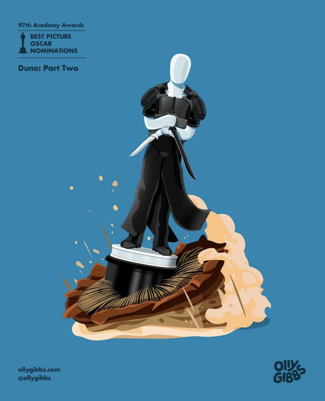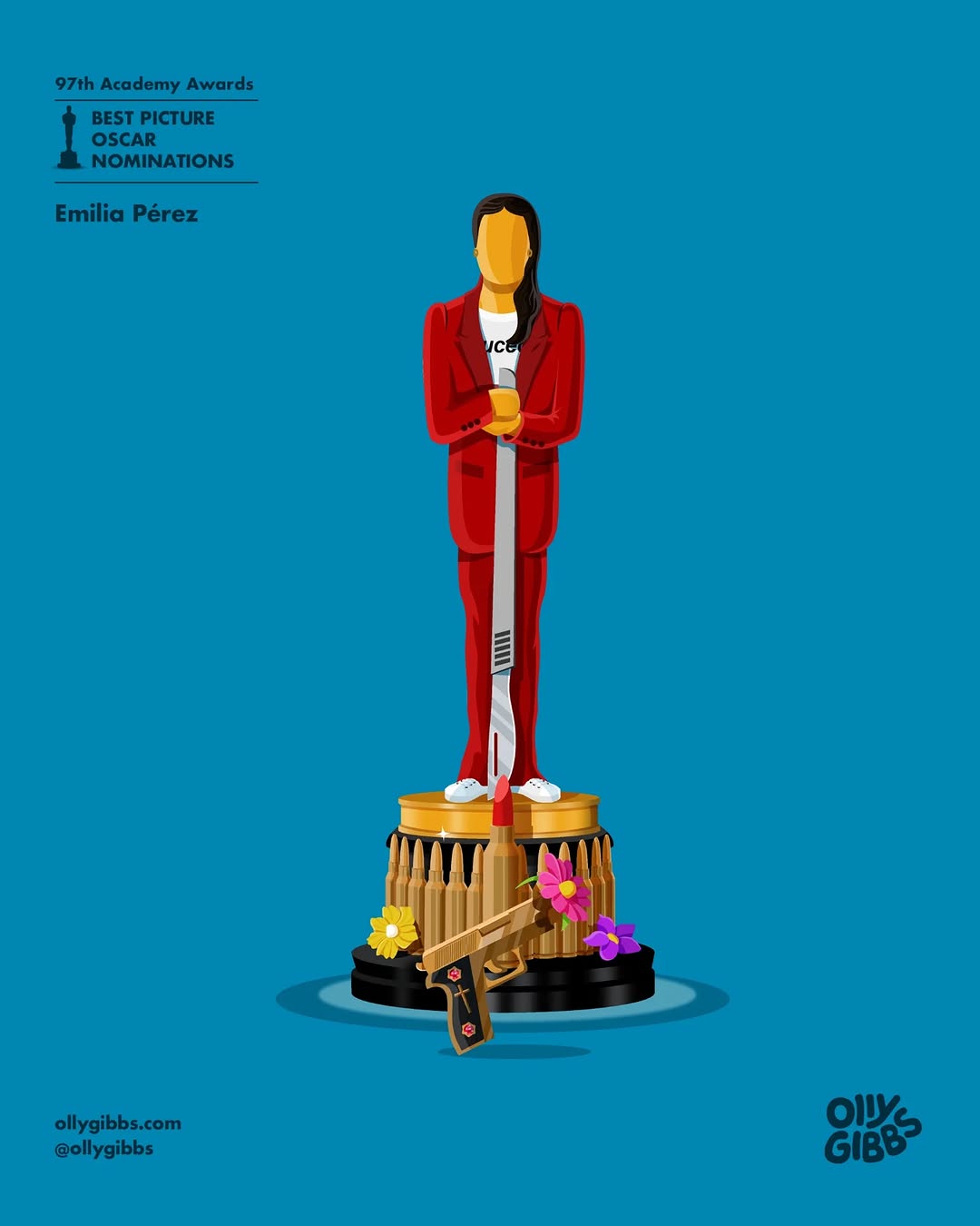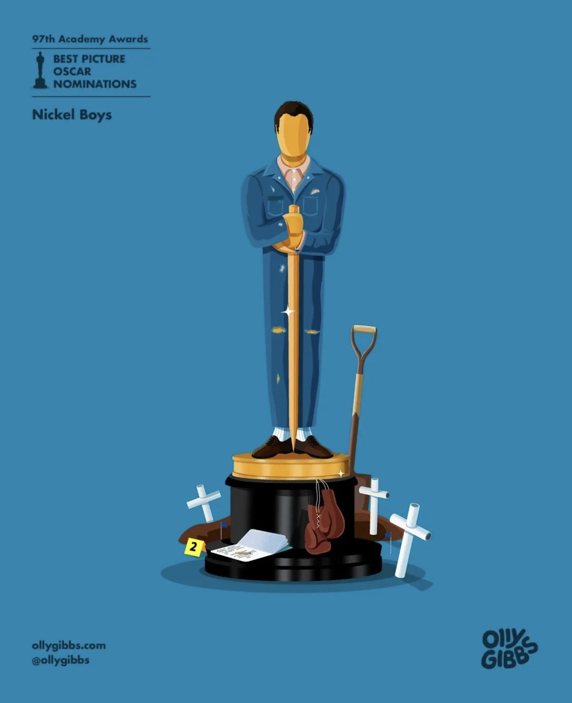 영국의 디자이너이자 아트 디렉터 올리 깁스(Olly Gibbs)가 제97회 아카데미 시상식 작품상 후보작 10편을 오스카 트로피 형태의 감각적인 일러스트로 재해석했어요!