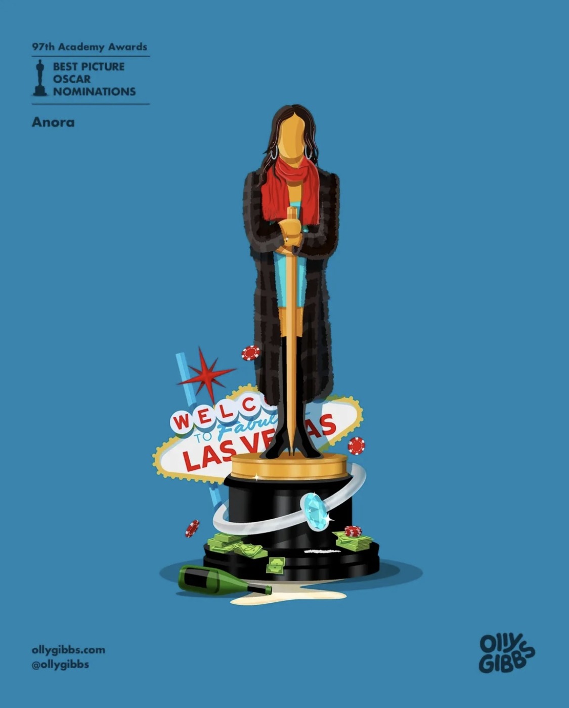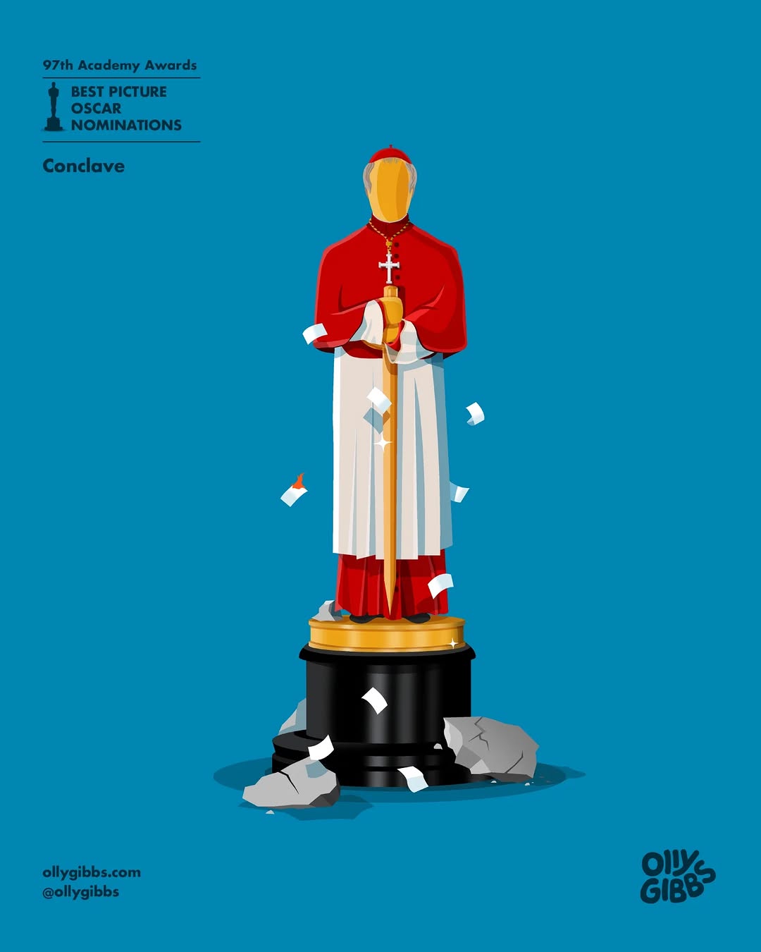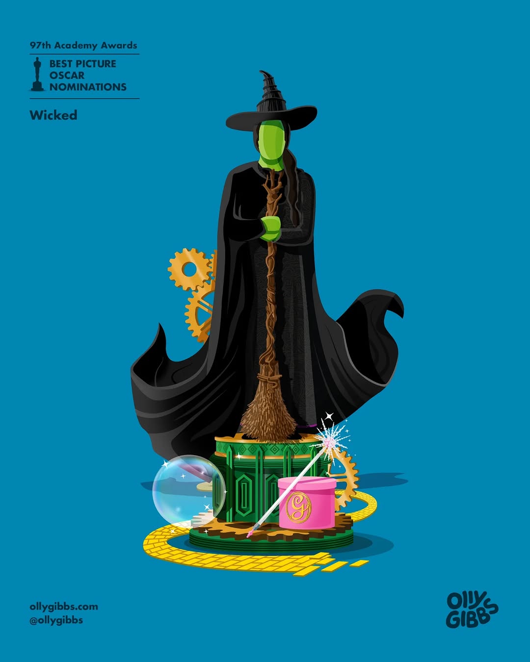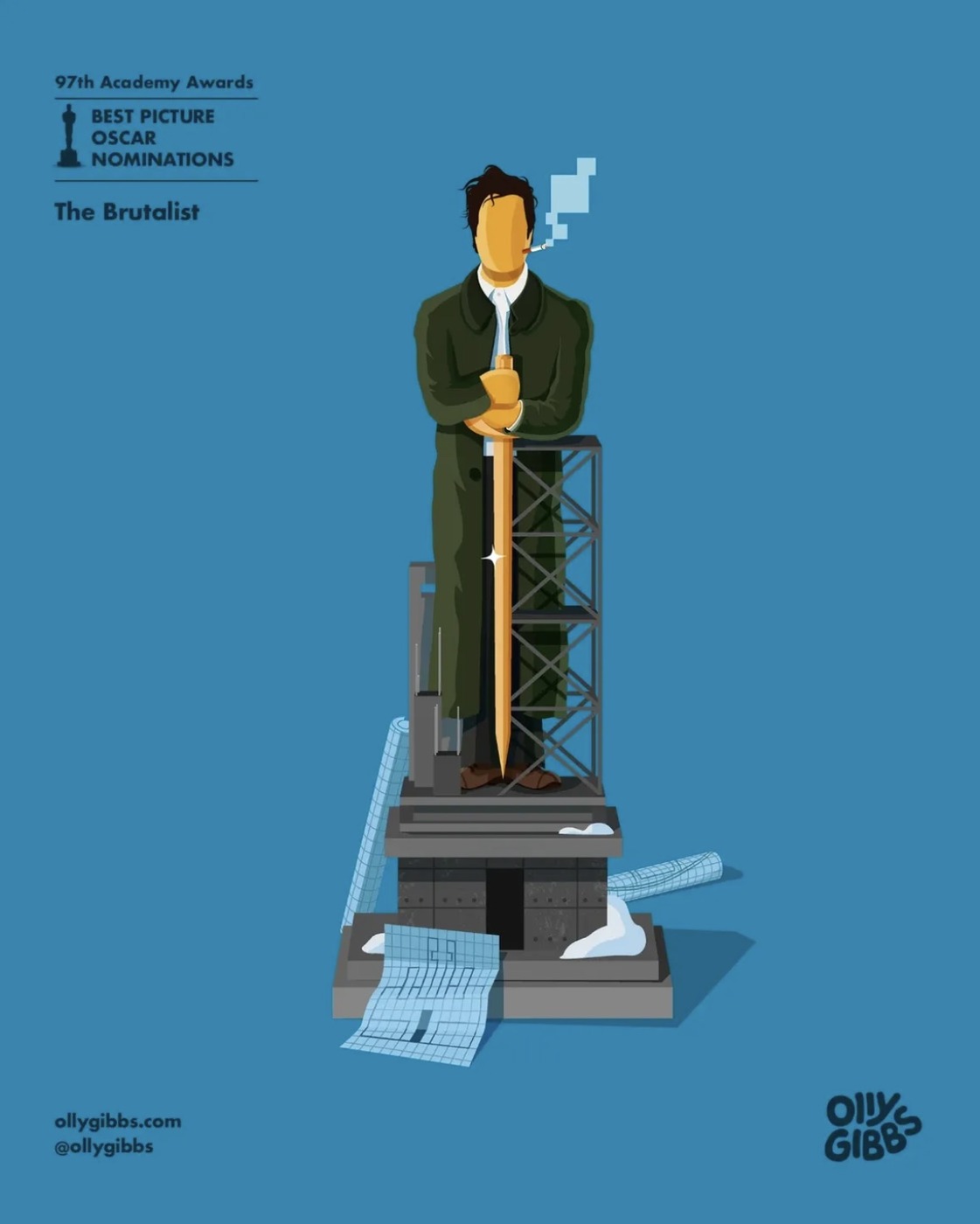 영국의 디자이너이자 아트 디렉터 올리 깁스(Olly Gibbs)가 제97회 아카데미 시상식 작품상 후보작 10편을 오스카 트로피 형태의 감각적인 일러스트로 재해석했어요!