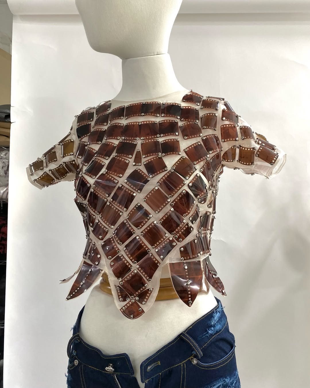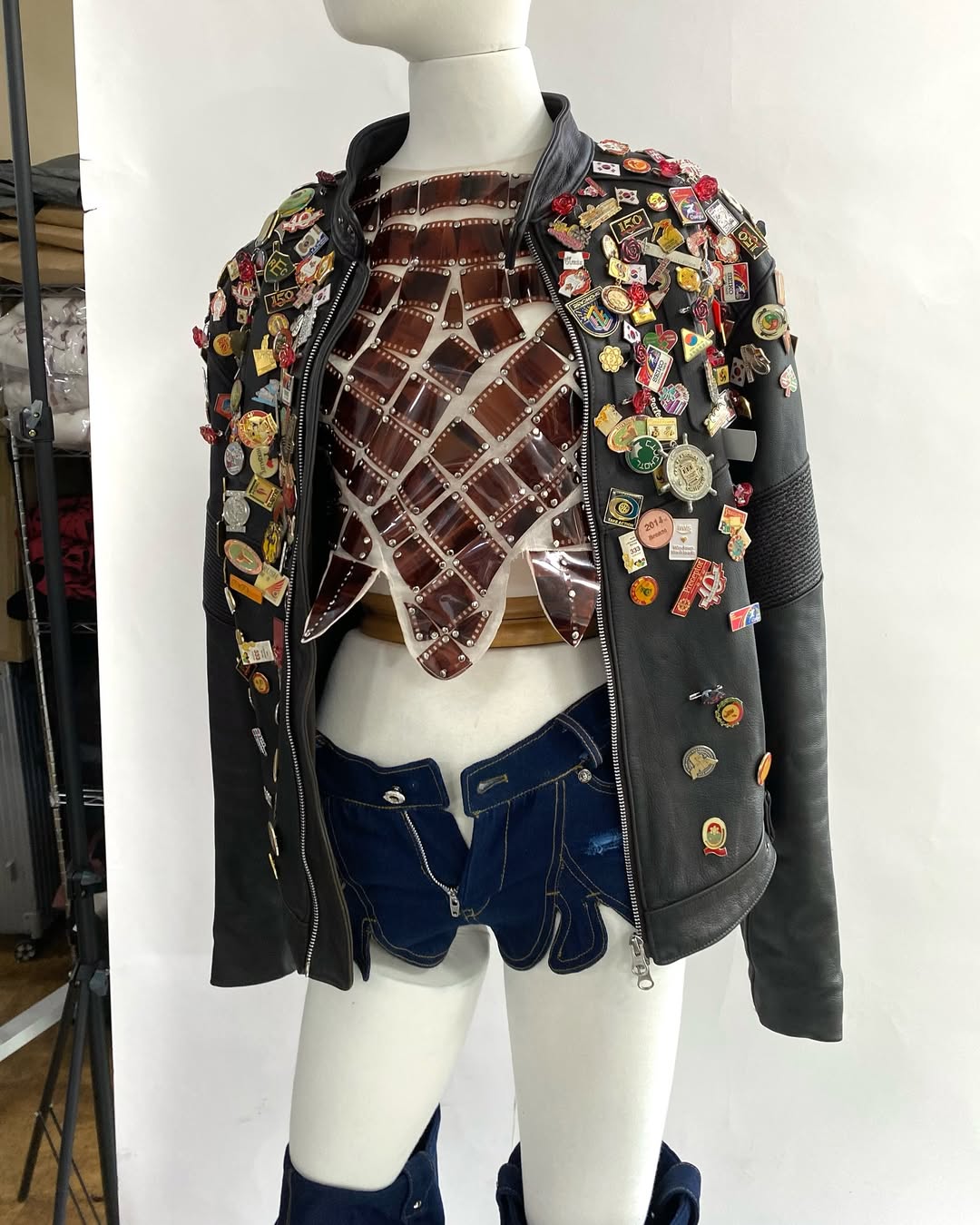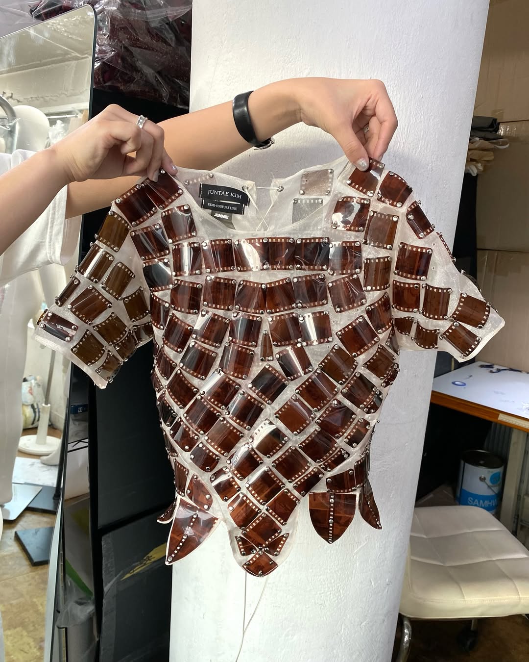 오직 제니를 위해 제작된 톱은 사진 필름을 이어붙여 스터드 장식으로 완성되었으며, 가죽 아우터는 서울을 향한 제니의 사랑을 표현하는 다양한 뱃지로 꾸며졌습니다. 여기에 데님 핫팬츠와 싸이하이부츠로 완성됐어요. 슬라이드를 넘겨 준태킴이 공개한 디테일 컷들을 확인해 보세요.