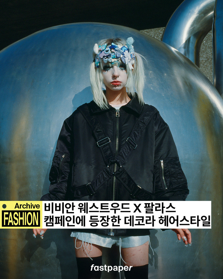 데코라는 영어 ‘데코레이션‘에서 말을 따온 일본의 서브컬쳐 패션입니다. 말 그대로 장식이 많으면 많을수록 더 좋은 패션이에요. 일본의 스트리트 패션을 담은 <후르츠 매거진>의 팬이라면 익숙할 것! 참고로 해당 캠페인은 <후르츠 매거진>의 디렉터이자 포토그래퍼 아오키 쇼이치가 촬영, 등장했습니다. 데코라 패션이 등장한 것도 아오키 쇼이치의 작업에 대한 헌사가 아닐까요?
