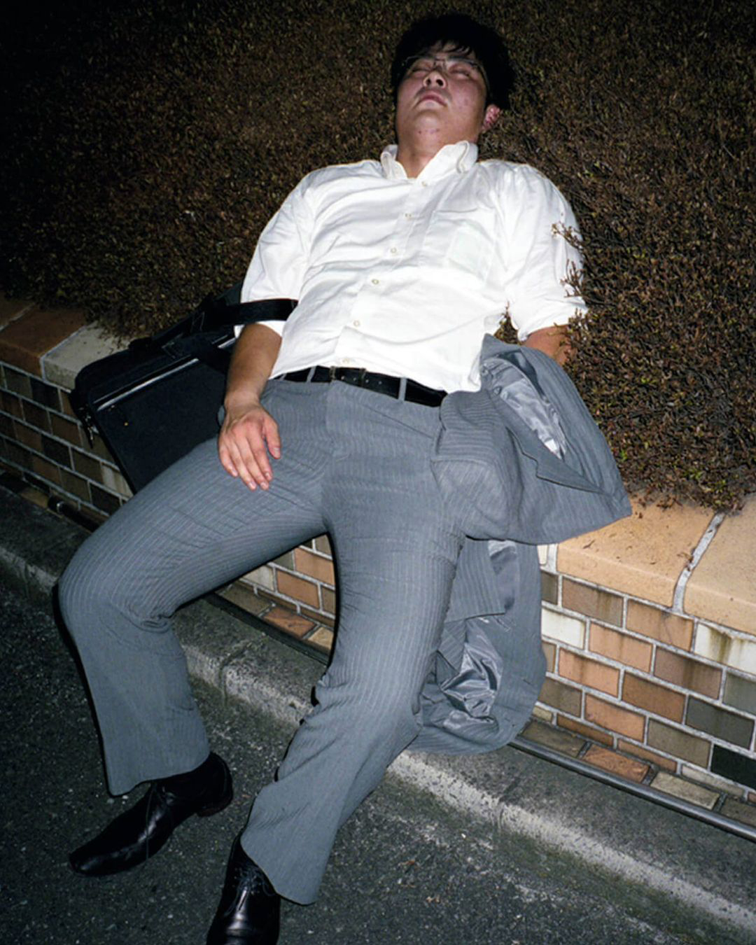과도한 업무를 끝내고 아쉬운 마음에 동료들끼리 모여 술을 마시는 일은 일본이나 한국이나 흔하디 흔하죠. 파블의 렌즈 속 회사원들은 긴 근무 시간과 제한된 심야 교통으로 인해, 정장 차림을 한채 공공 공간에서 잠을 잡니다. 파블은 잘 빼입은 남성과 그들을 품은 더러운 거리 사이의 파격적인 대비에 매료되어 ‘High Fashion’이란 제목을 선택했죠.