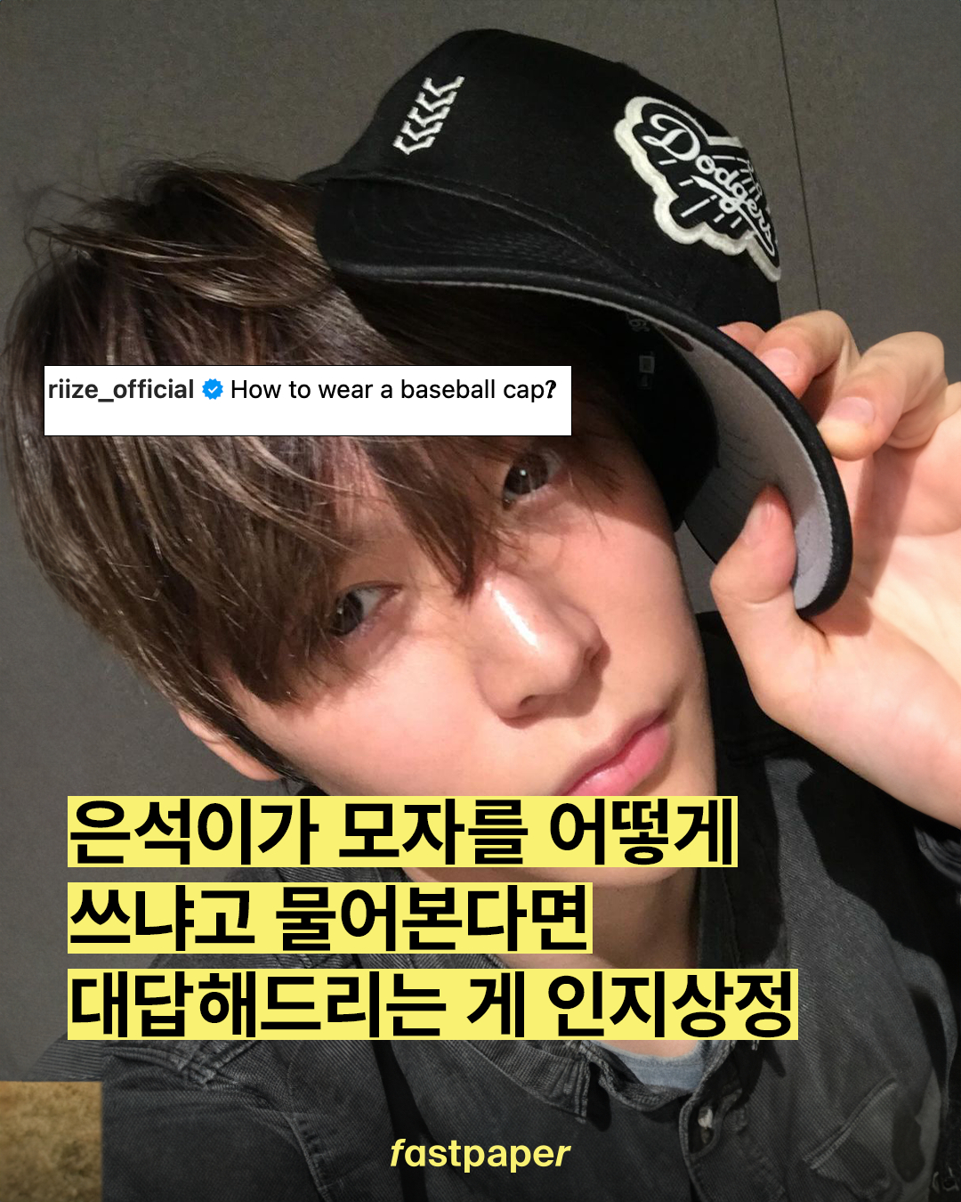 “How to wear a baseball cap?̷” 라이즈 은석이 인스타그램을 통해, 야구 모자를 쓰는 방법을 물었습니다. 하지만 은석쿤, 멀리서 답을 구할 것도 없어요. 은석의 친구들, 라이즈 멤버들이 다양한 모자 착용법을 알고 있으니까요! 라이즈와 함께 알아보는 ‘올바를 모자 착용법’을 준비했습니다.