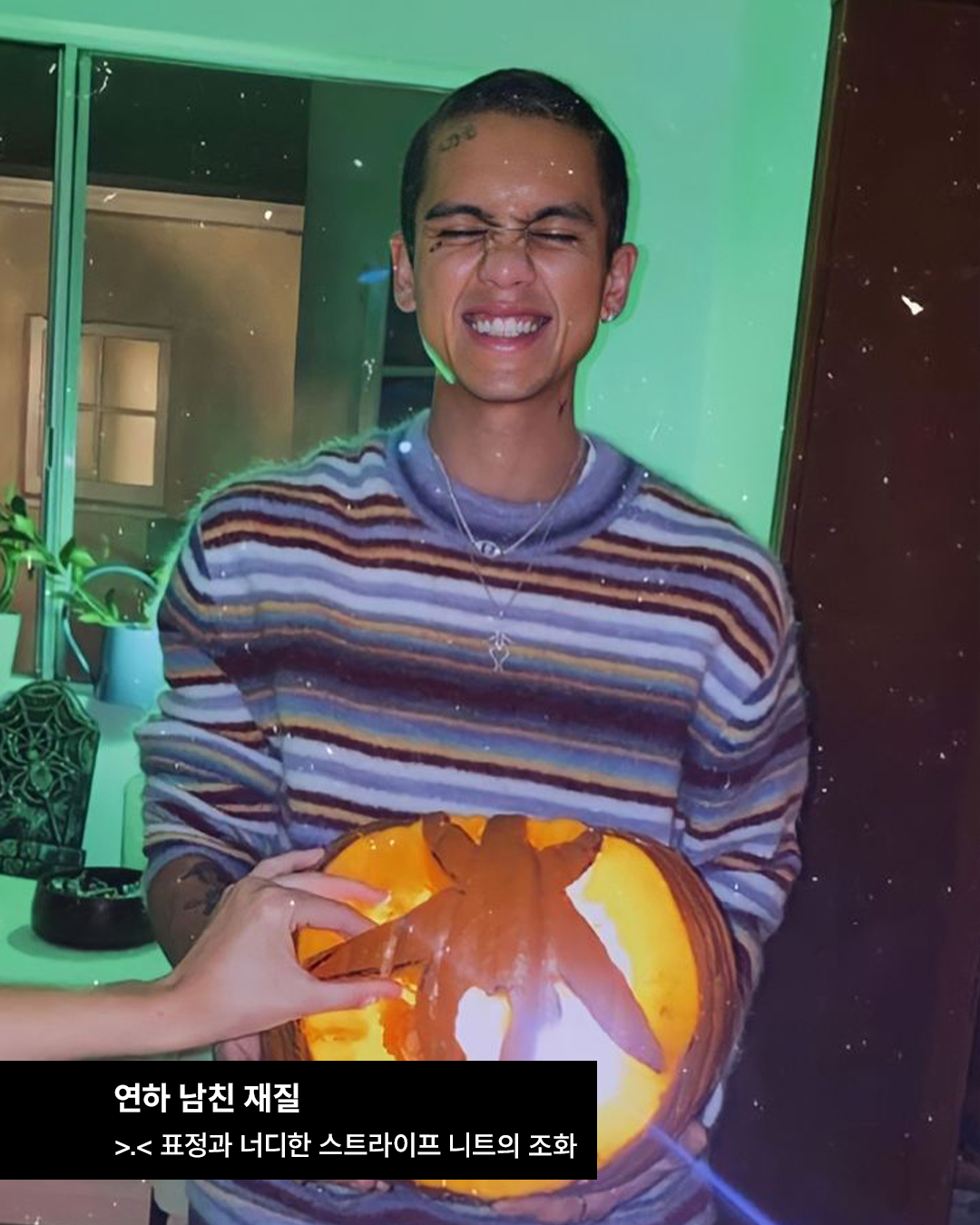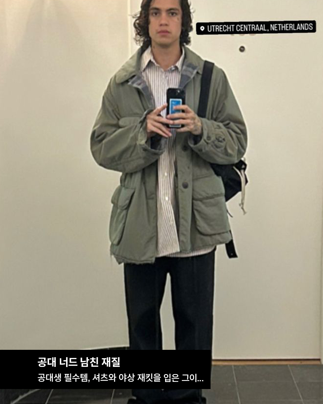 원래 음악 잘하는 남자는 옷도 잘 입는 것이 국룰. 도미닉 파이크는 빈티지한 디테일과 컬러가 돋보이는 아이템들을 센스있게 매치합니다. 오버사이즈 셔츠와 야상 재킷, 스트라이프 니트 등으로 공대 너드미를 연출하거나, 깔끔하고 심플한 청청 스타일링도 즐기는 편. 그의 다채로운 남친 재질 스타일링을 확인할 시간