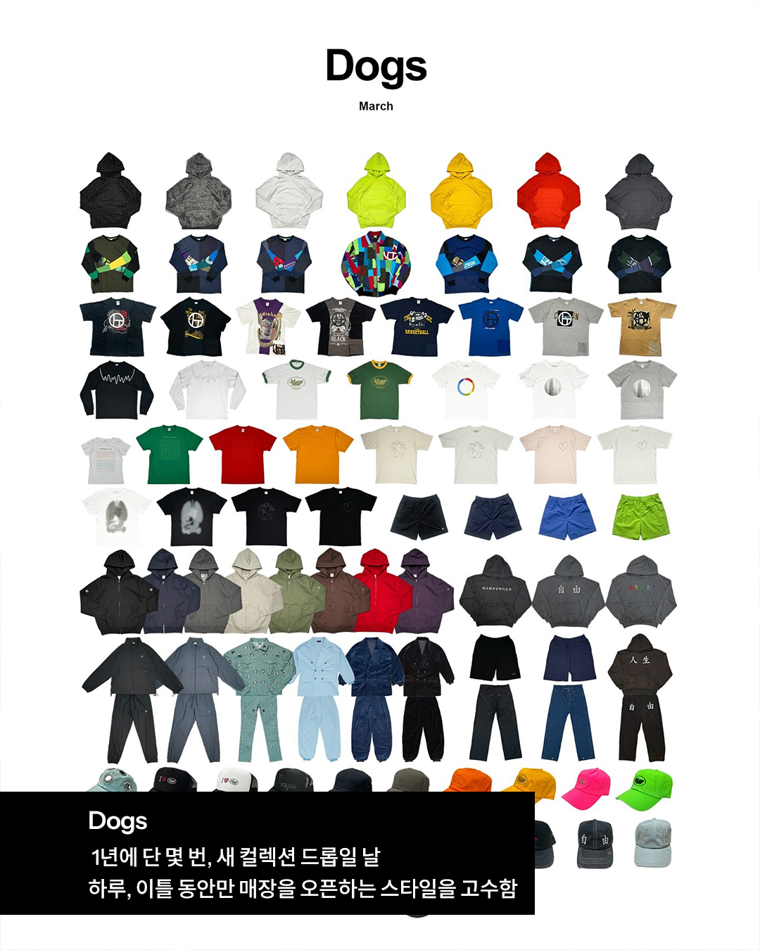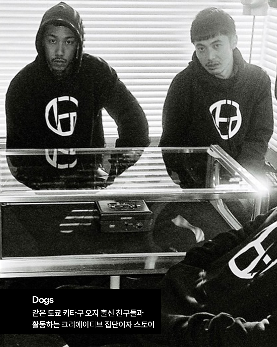 고향인 도쿄 키타구 오지를 거점으로 친구들과 함께 크리에이티브 집단이자 스토어 Dogs(@dogs.oji)를 이끌고 있습니다. 독스가 특이한 점은 1년에 단 몇 번, 새 컬렉션 드롭일에 하루, 혹은 이틀 동안만 매장을 오픈하는 것.