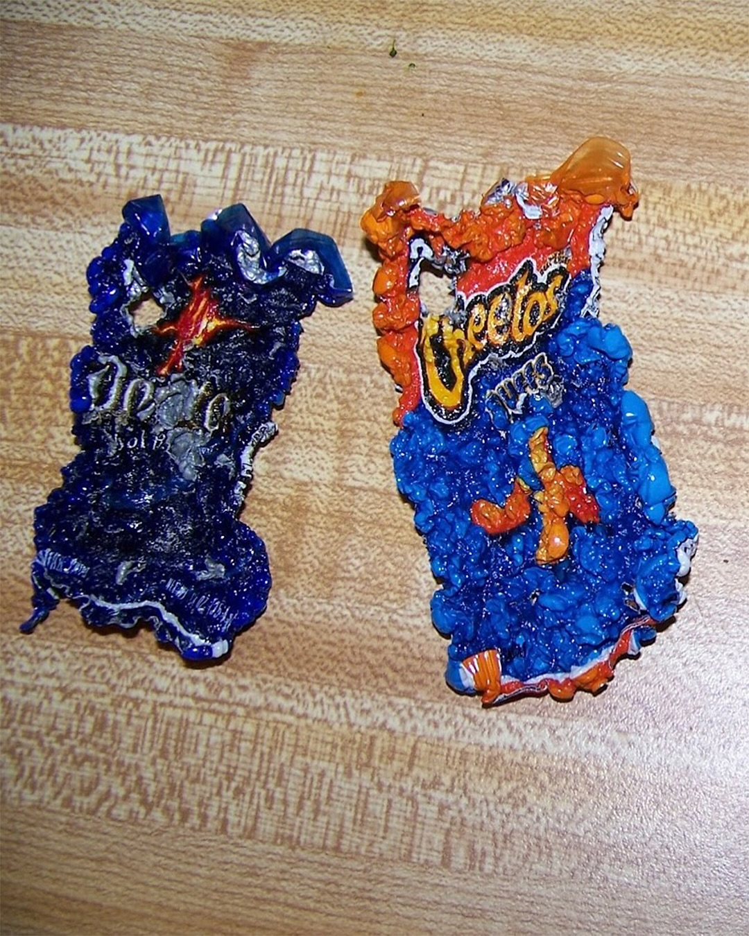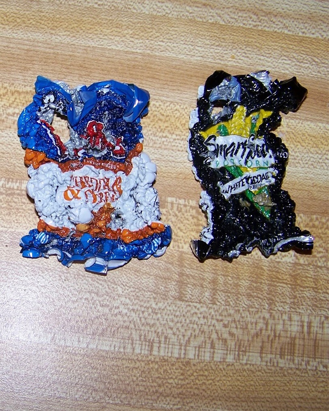 과자 봉지가 줄어드는 건 ‘열 수축 실험’의 일환인데요. 과자 기름기가 있으면 타거나 냄새가 날 수 있기 때문에, 과자 봉지를 먼저 깨끗이 씻고 완전히 말려야 해요. 그리고 봉지를 그대로 넣거나, 원하는 모양대로 잘라서, 약 150도 정도로 예열한 오븐에 넣어줍니다. 이때 유산지를 깐 베이킹 시트 위에 봉지를 올려주세요. 봉지가 휘지 않고 평평하게요. 1-2분이 지나면, 봉지가 구불구불해지면서 쪼그라들다가 갑자기 납작해지는데, 이때 꺼내주어야 합니다. 쪼그라든 봉지를 무거운 책 등으로 눌러줘 평평하게 고정하고 몇 분 식히면 ‘과자 봉지 키링’ 완성! 꼭 안전하게 실험하세요.