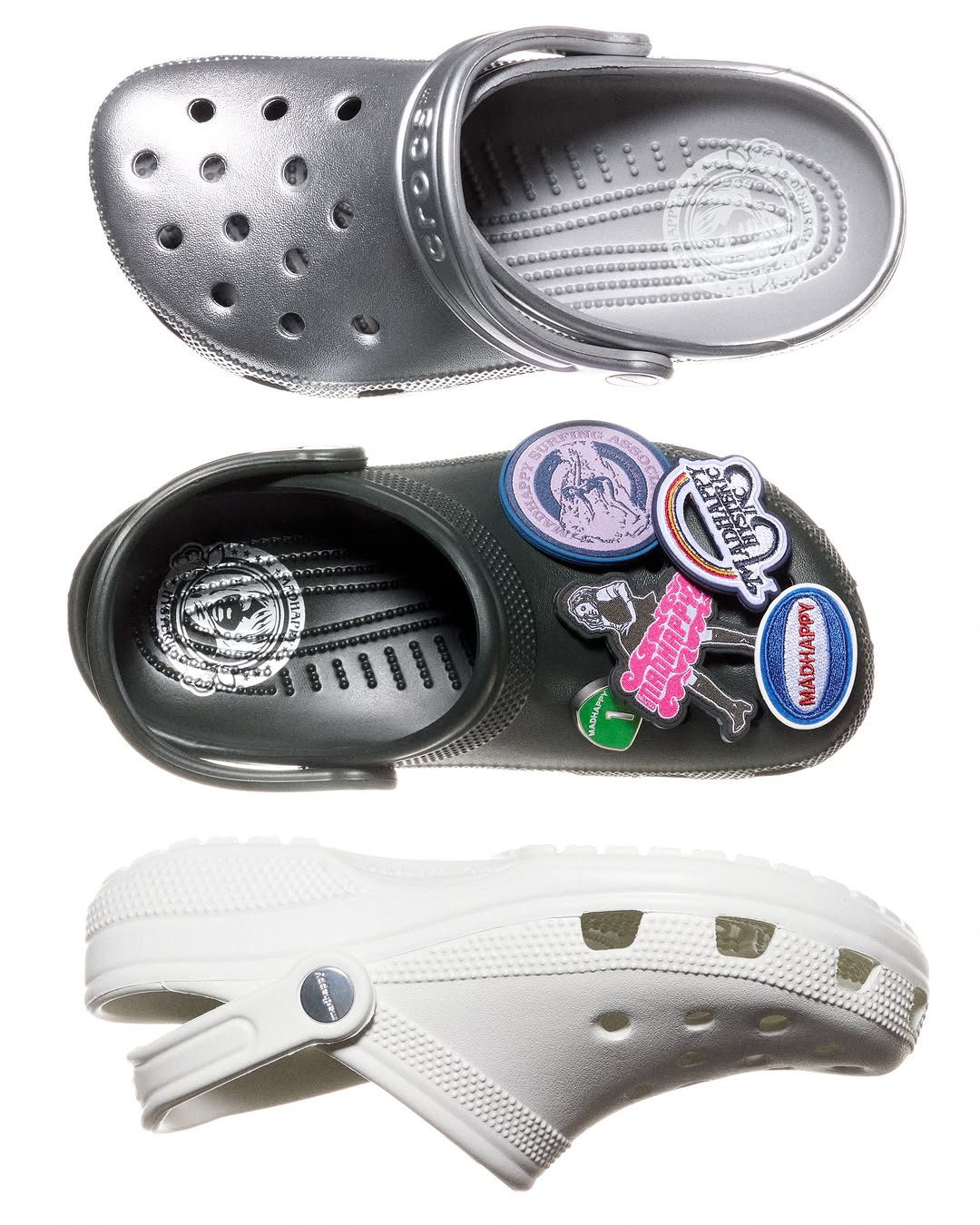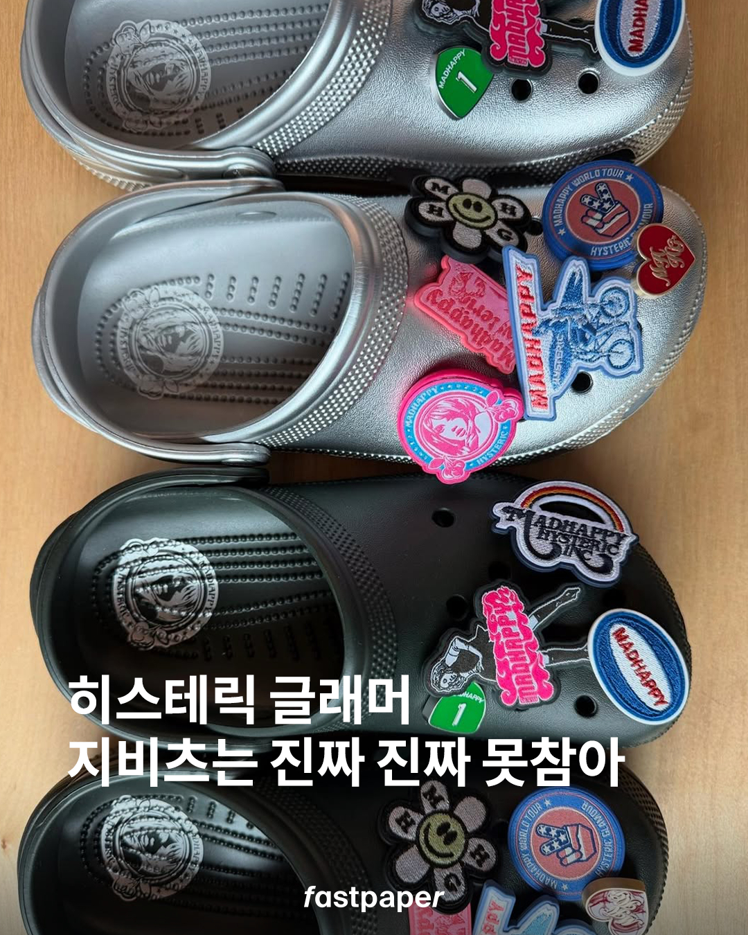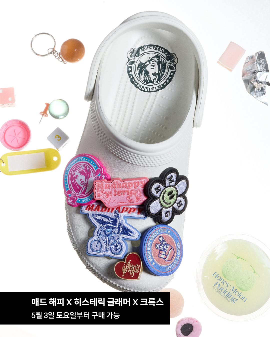 히스테릭 글래머, 내 지갑 언제까지 다 털어갈거예요? LA 기반 패션 브랜드 매드 해피와 히스테릭 글래머, 그리고 크록스가 만났습니다. 이번 컬렉션은 화이트, 실버, 블랙 총 세가지 컬러의 크록스 라인업과 히스테릭 글래머와 매드 해피의 시그니처 디자인이 돋보이는 지비츠들로 구성되어 있는데요. 이는 5월 3일 토요일 오전 10시부터 구매 가능합니다.