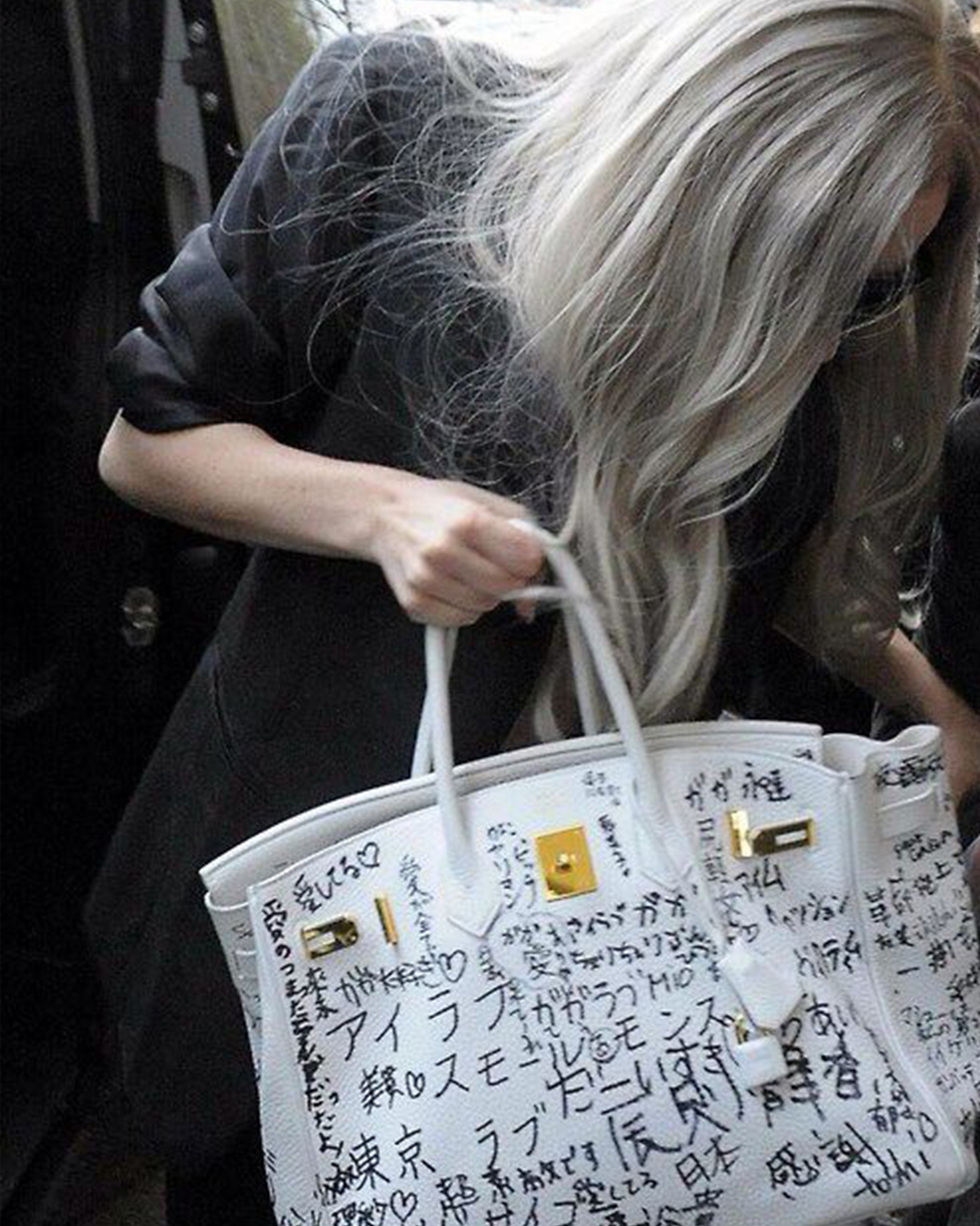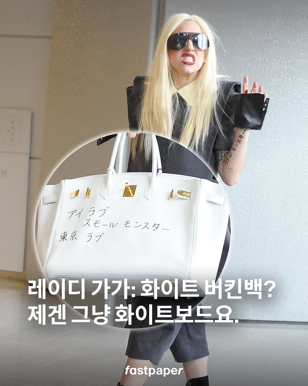 레이디 가가의 팬 사랑은 알아줘야 돼. 2010년 4월, 일본 도쿄에서의 공연을 앞두고 나리타 국제공항에 도착한 레이디 가가는 독특한 방식으로 팬들에게 사랑을 표현했는데요. 바로 에르메스 화이트 버킨백에 블랙 마커를 사용해 일본어로 “I love small Monster, Tokyo love”라고 적은 것이죠.