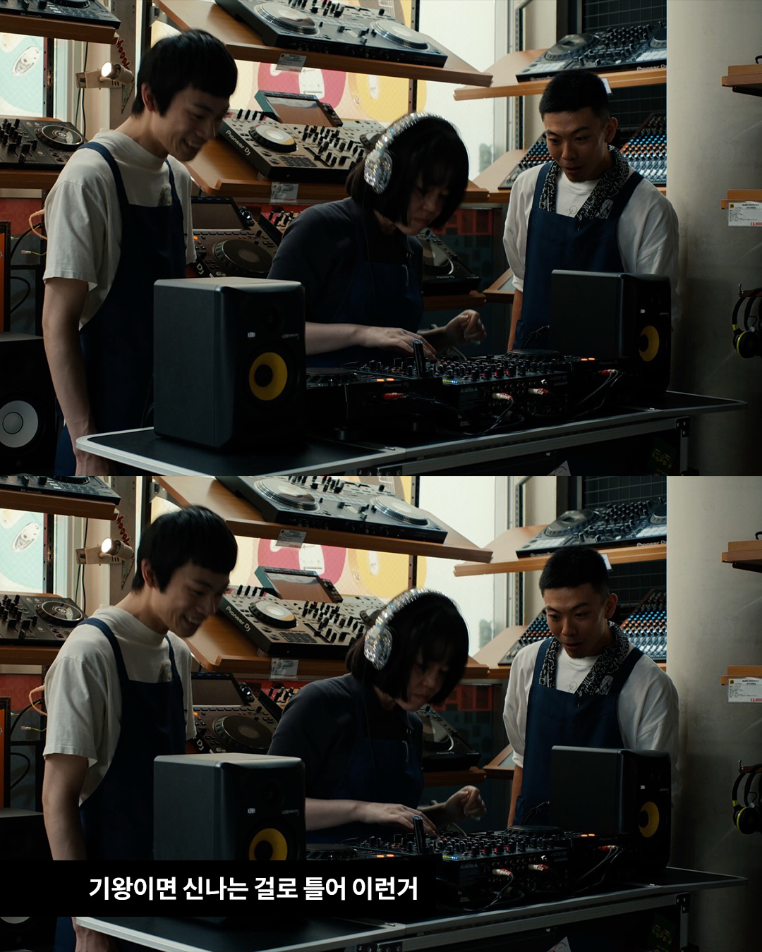 네오 소라 감독이 개인 소셜미디어에 공개한 제작 비하인드 영상을 통해 알게 된 사실, 사장님의 디제잉 실력은 열심히 연습한 결과였다는 것이죠. 디제잉 선생님은 바로 악기 상점 평일 알바로 출연한 코가 유타 배우였습니다. 유타 배우 쿠리하라 하야토도 함께 춤을 추며 즐기는 모습에 저까지 절로 흥겨워지네요.
