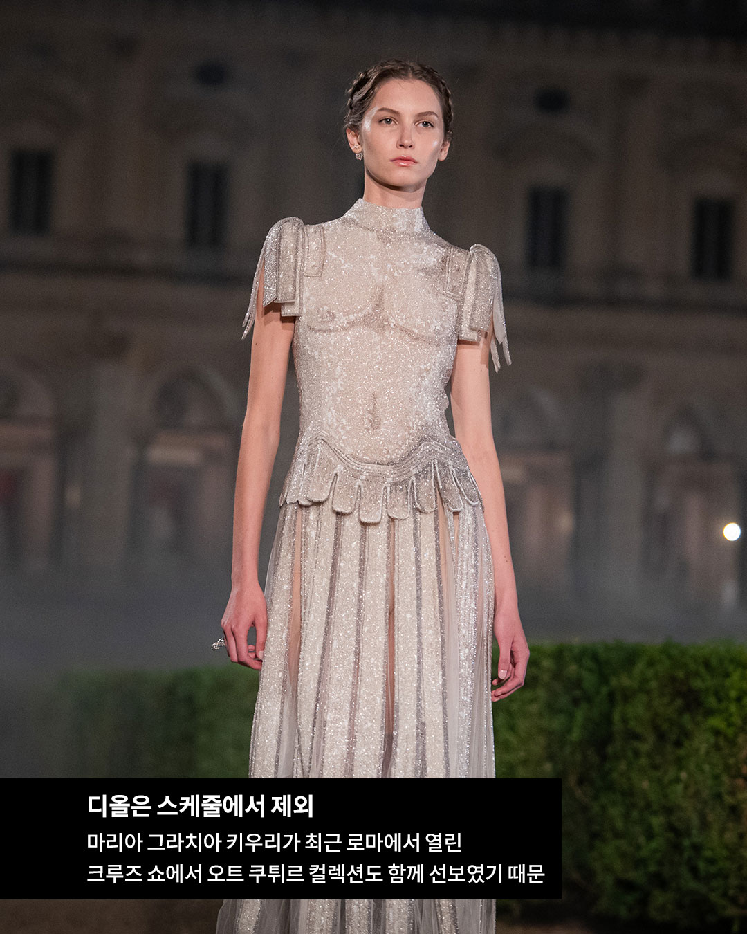 한편, 조나단 앤더슨이 새롭게 지휘하게 된 디올은 최근 마리아 그라치아 키우리가 로마에서 선보인 컬렉션으로 인해 이번 쿠튀르 주간에는 참여하지 않으며, 장 폴 고티에 또한 듀란 랜팅크가 합류하며 이번 쿠튀르 컬렉션을 건너뛰게 되었습니다. 파리 쿠튀르 주간이 시작되기 전날인 7월 6일에는 마이클 라이더가 첫 셀린느 컬렉션을 공개할 예정이에요.