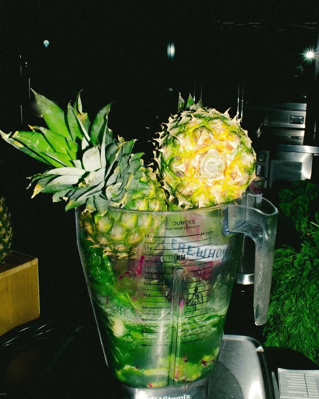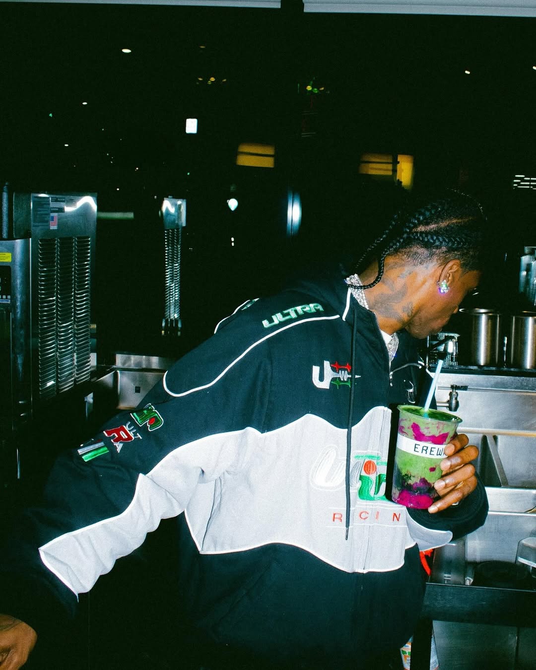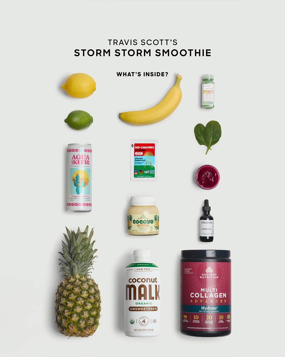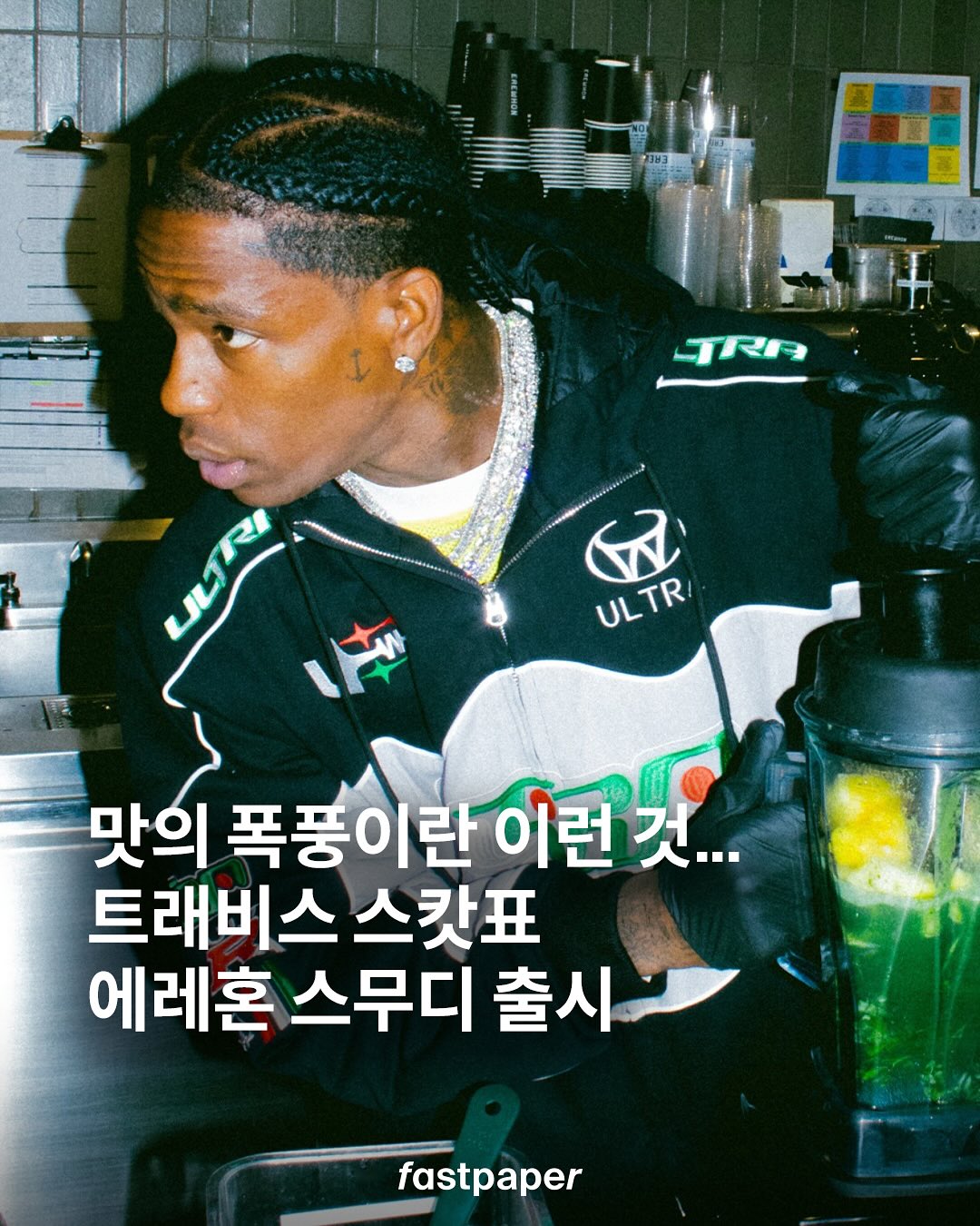 파인애플, 바나나, 시금치 등 유기농 재료는 물론, 트래비스가 직접 고른 특별한 슈퍼푸드들이 조화롭게 어우러졌고요. 출시 소식과 함께 그는 캑터스 잭 크루와 주방에 선 모습도 함께 공유했습니다. 현재 LA 전역 에레혼 매장에서 만나볼 수 있는 트래비스 스캇과 에레혼의 ‘스톰 스톰 스무디’… 이젠 건강도 느낌 있게 챙겨보세요.