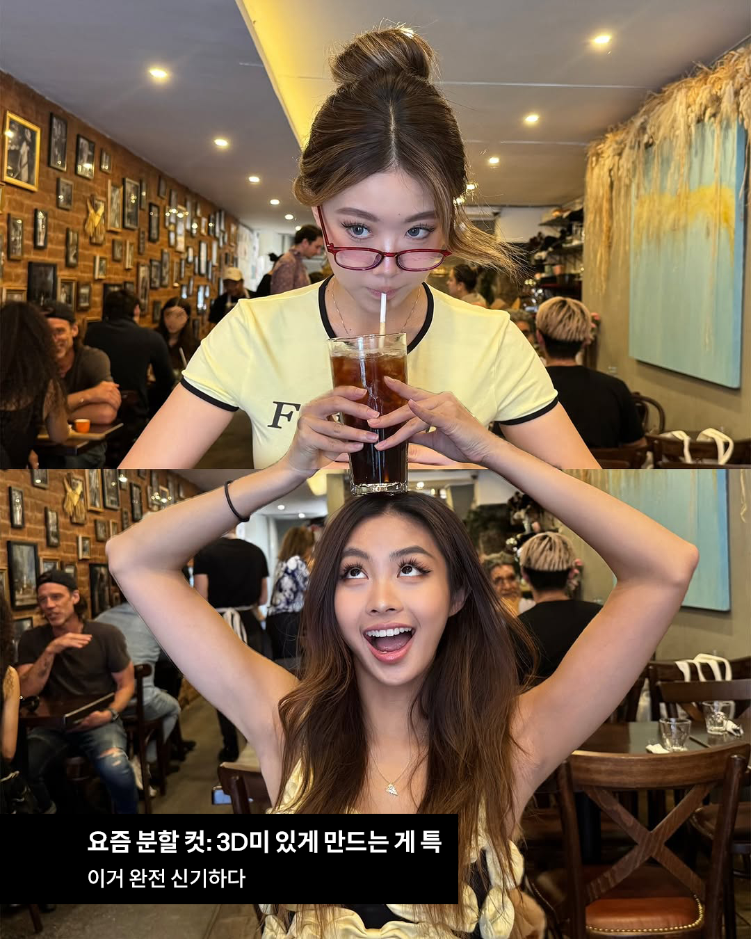 요즘 누가 그냥 분할 컷만 올리냐. 3D미 있게 끼 부려봅시다. 인플루언서(@daiyinchi)가 선보인 이 3D 분할 컷! 상하 혹은 좌우로 사진을 넣은 후, 한 요소가 두 사진 사이 경계를 가로지를 수 있도록 연출하면 되는데요. 누끼 좀 따봤다하는 패페 친구들이라면 잘 해낼 수 있을 겁니다.