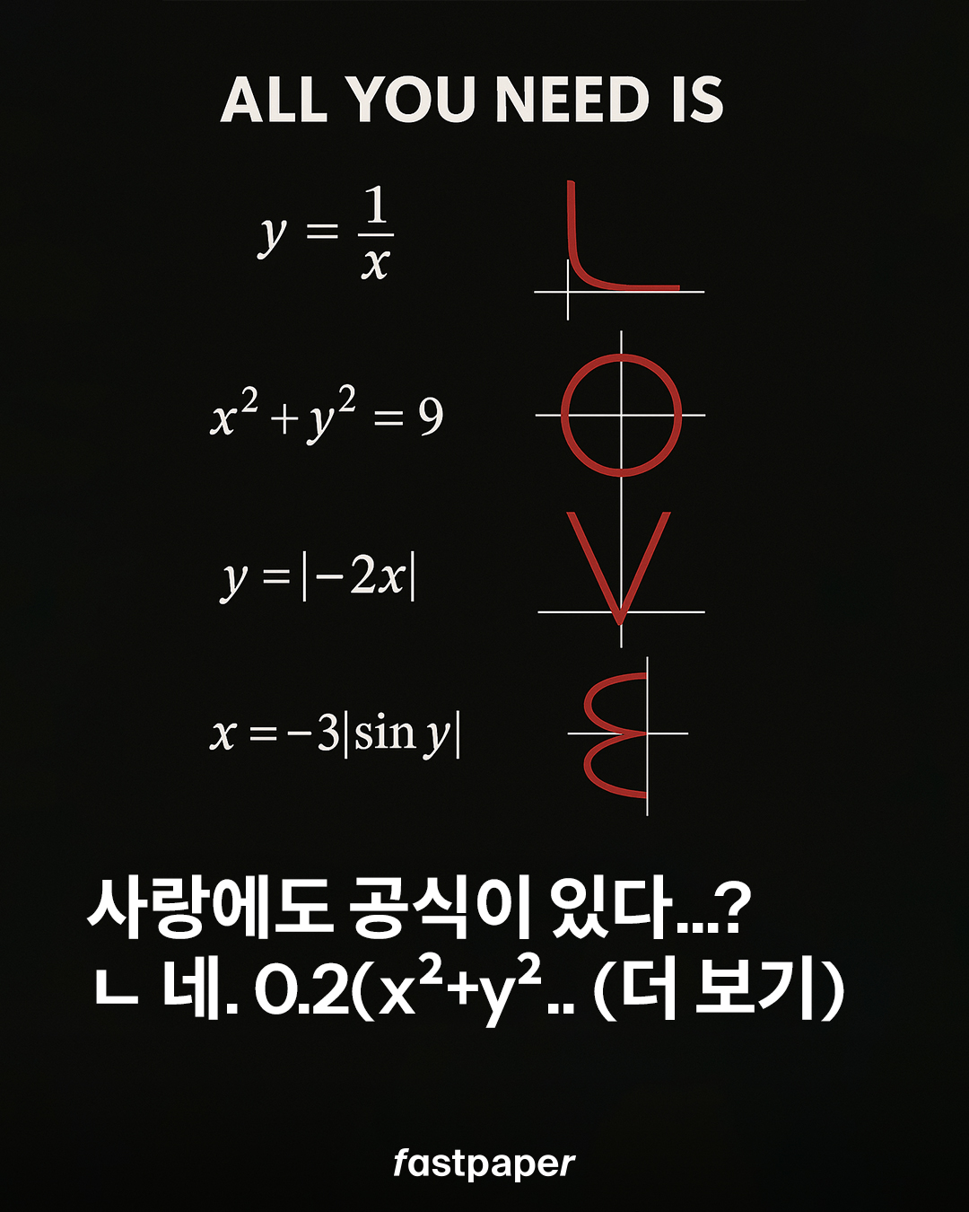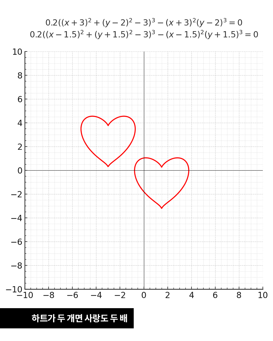 다른 의미에서.. 사랑에도 정답이 있긴 하죠. 좌표 위에 숫자를 얹고 또 기호를 더하고 곱하다 보면, 짠! 이렇게 다양한 하트들이 탄생합니다.