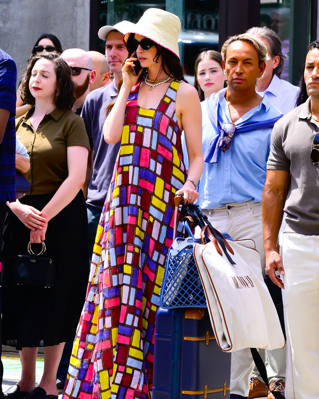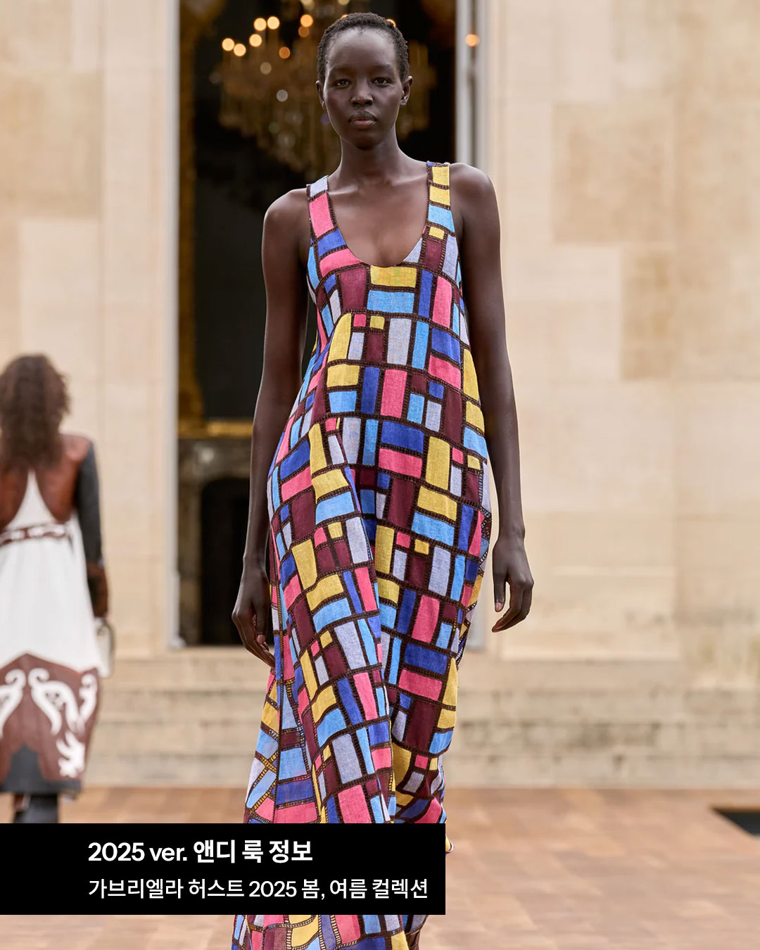 뉴욕 거리를 걷는 앤디 삭스, 그녀는 여전히 한 손에 휴대폰을 잡고 있네요. 아마도 미란다와 통화 중이겠죠? 2006년이 아닌 2025년에 마주친 앤디는 빈티지 장 폴 고티에 핀스트라이프 슈트와 빈티지 코치 백, 그리고 2025 봄, 여름 런웨이에 공개된 가브리엘라 허스트의 패치워크 드레스를 입고 있네요.