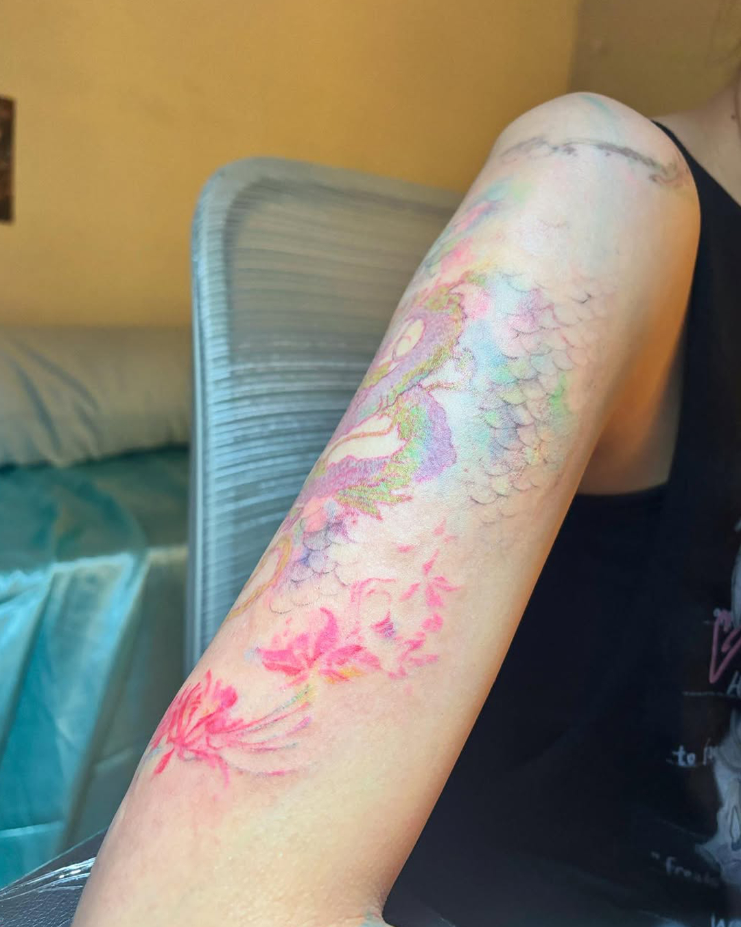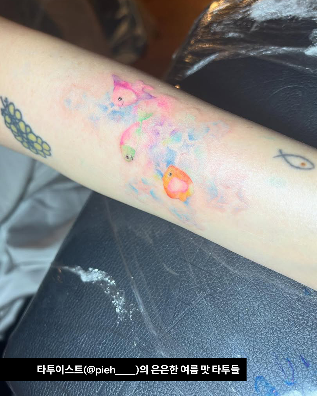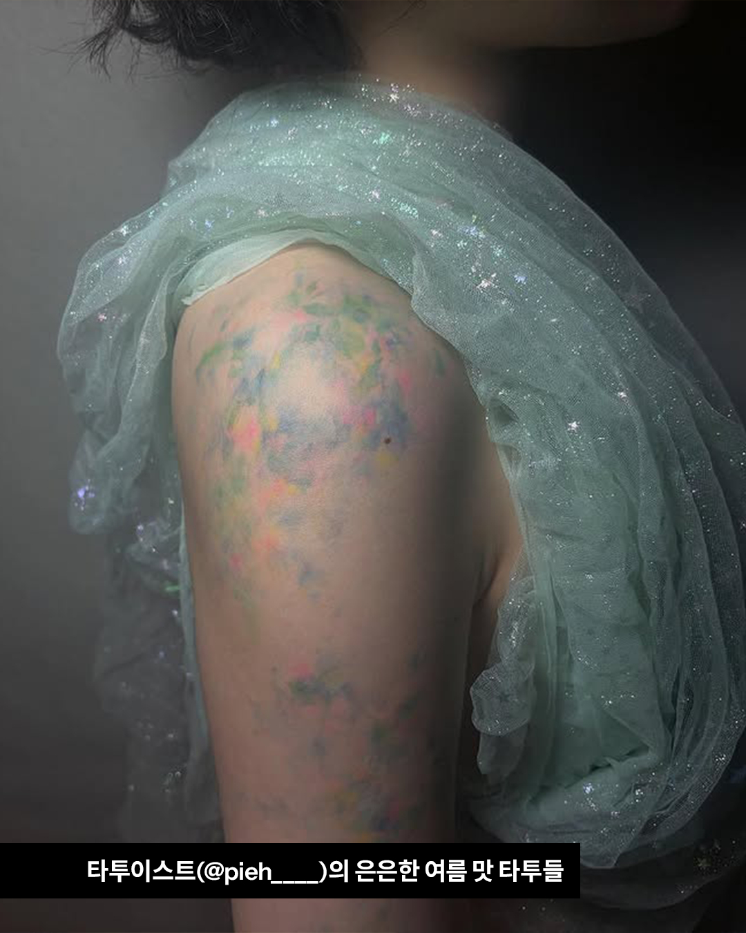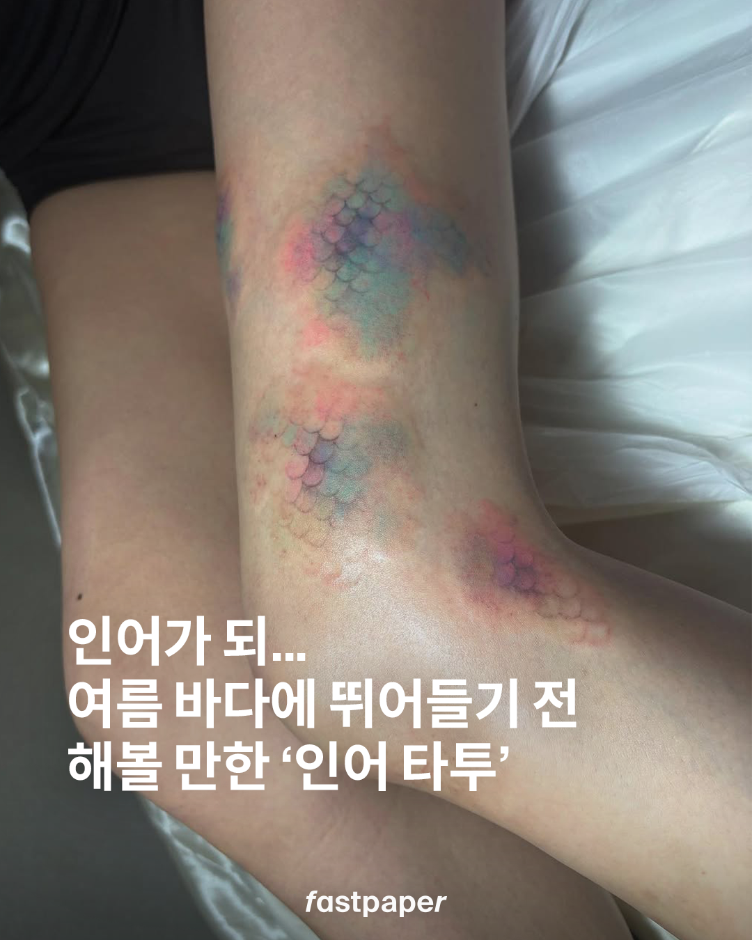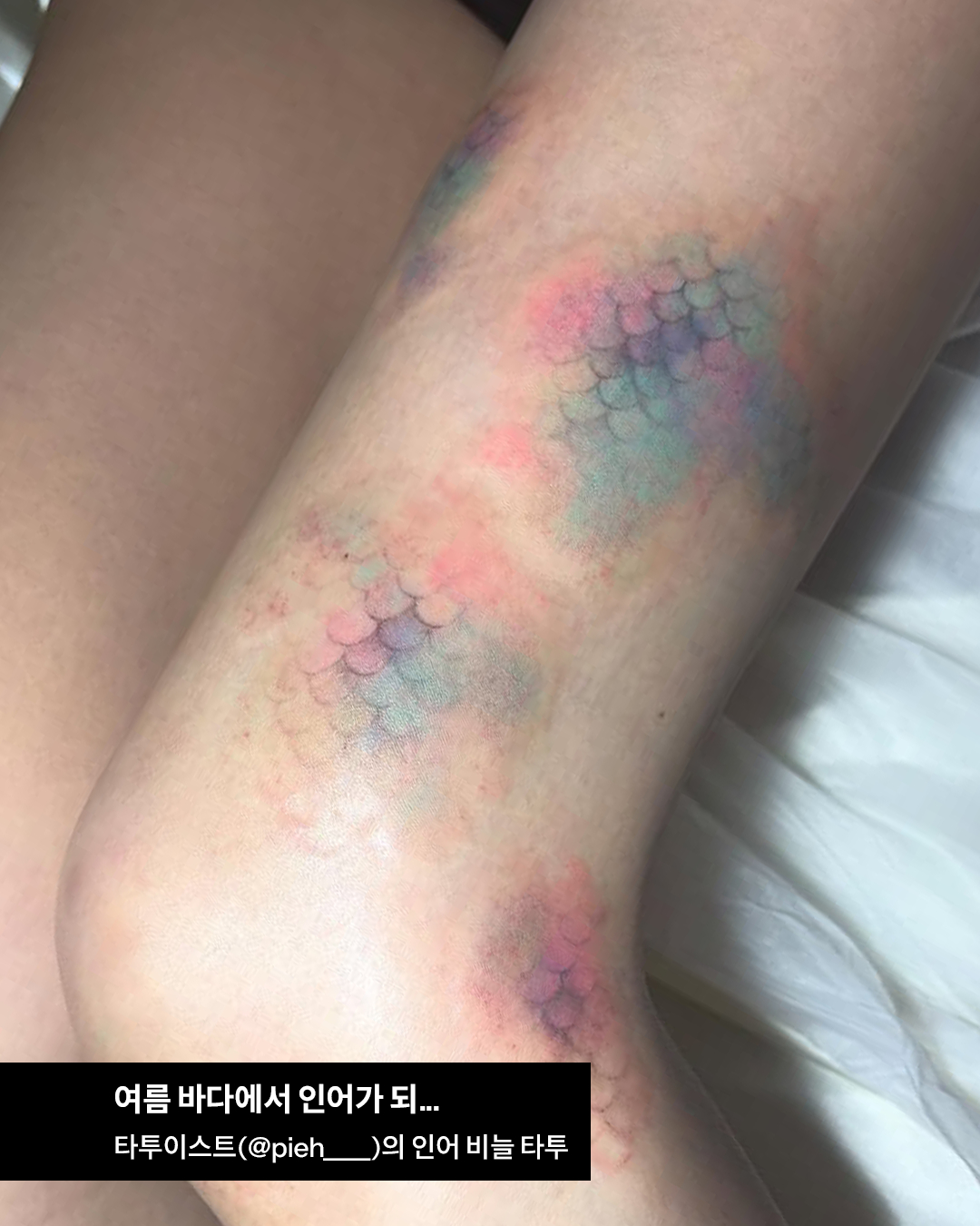 영롱한 인어 비늘을 몸에 새기고 난 후 바다에 뛰어들고 싶을 뿐이야… 수채화처럼 피부에 은은하게 스며든 여름의 맛이 절로 느껴지는 세이렌 코어 타투! 여름이 다 가기 전에 빨리 시도해보자고