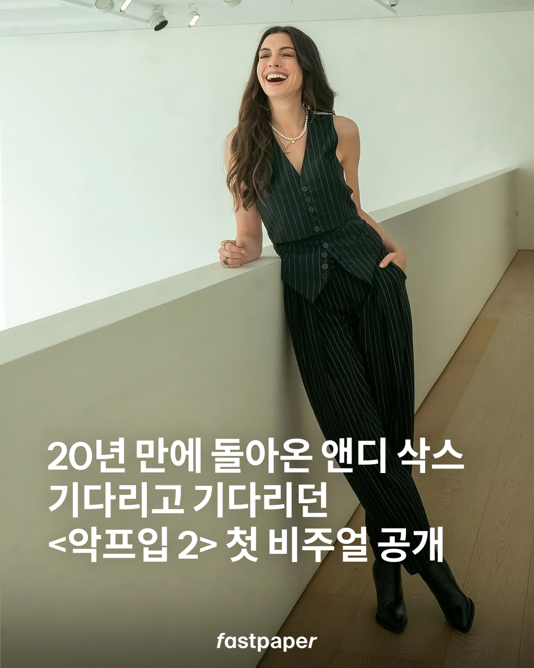 영화 <악마는 프라다를 입는다 2> 촬영이 본격 돌입한 가운데, 앤 해서웨이가 ‘앤디 삭스’로 돌아온 듯한 첫 이미지를 공유했습니다.