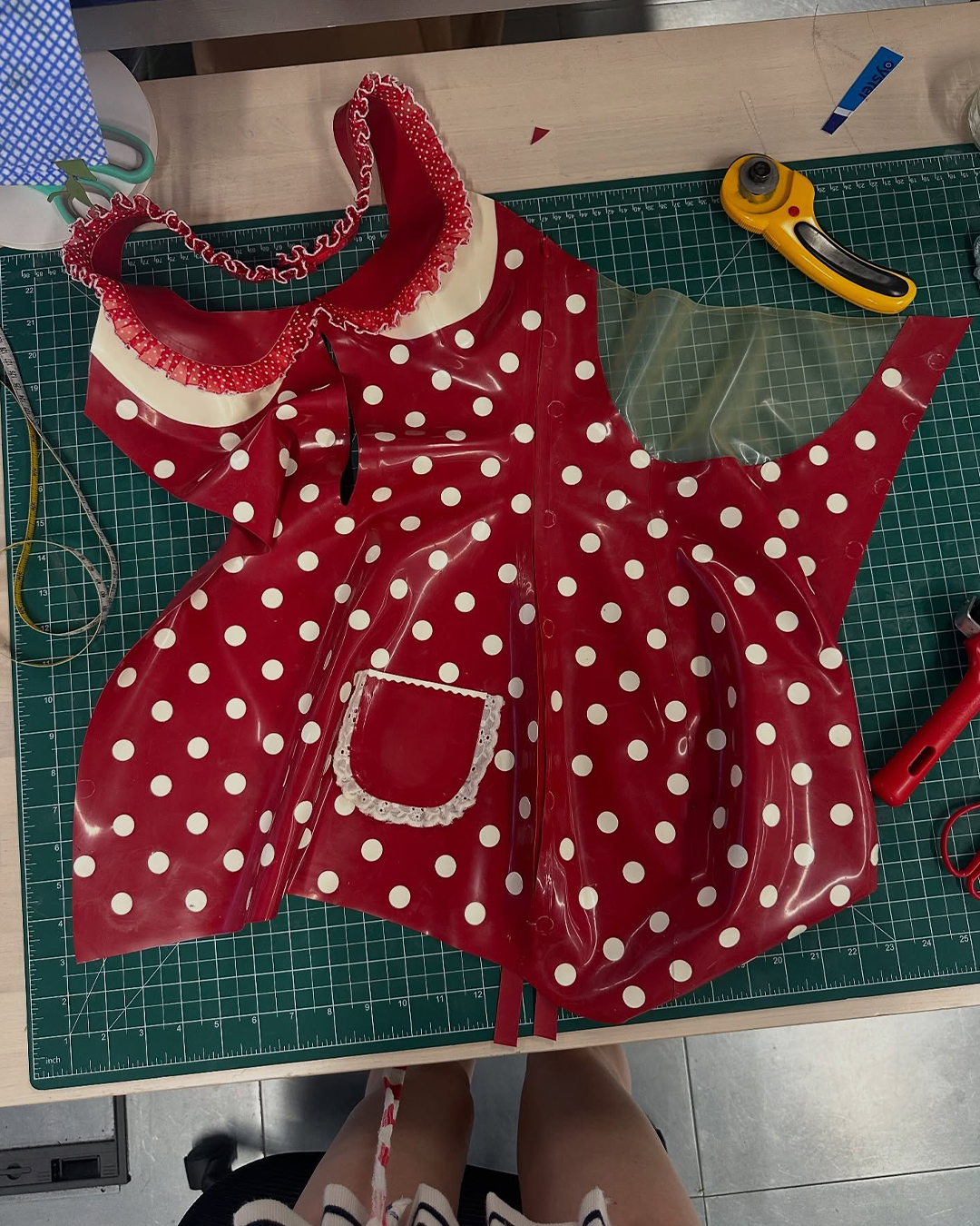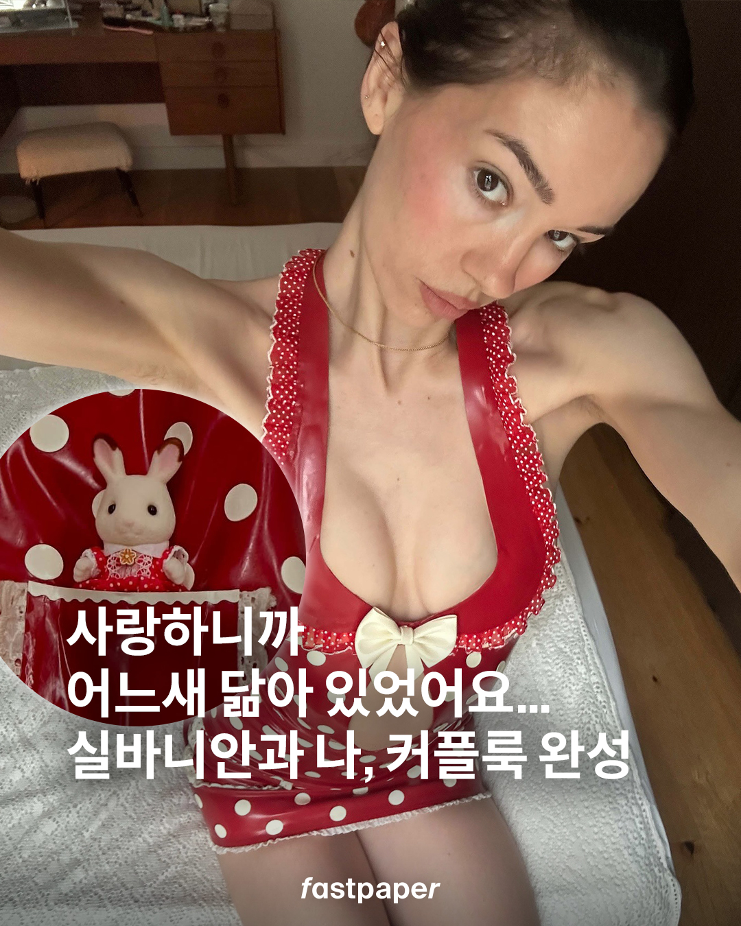 브랜드 ‘포스터 걸’의 공동 창립자이자 크리에이티브 디렉터인 나타샤 서머빌이 작은 토끼 실바니안 인형이 입던 빨간 도트 드레스를 자신만의 스타일로 새롭게 커스텀한 드레스를 공개했습니다.