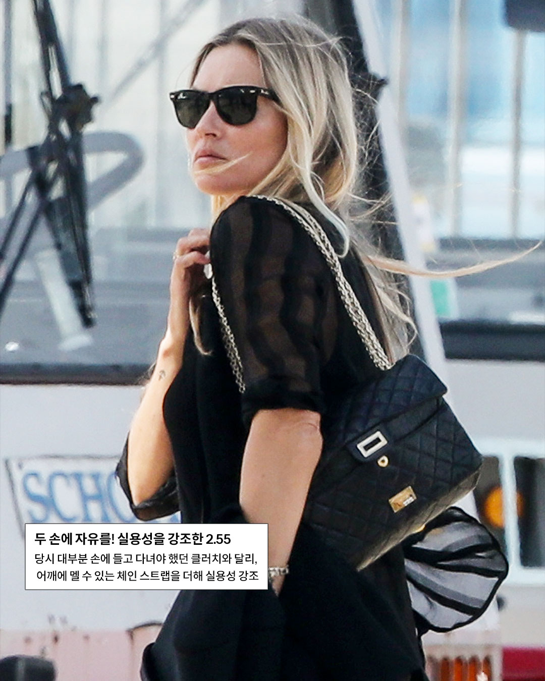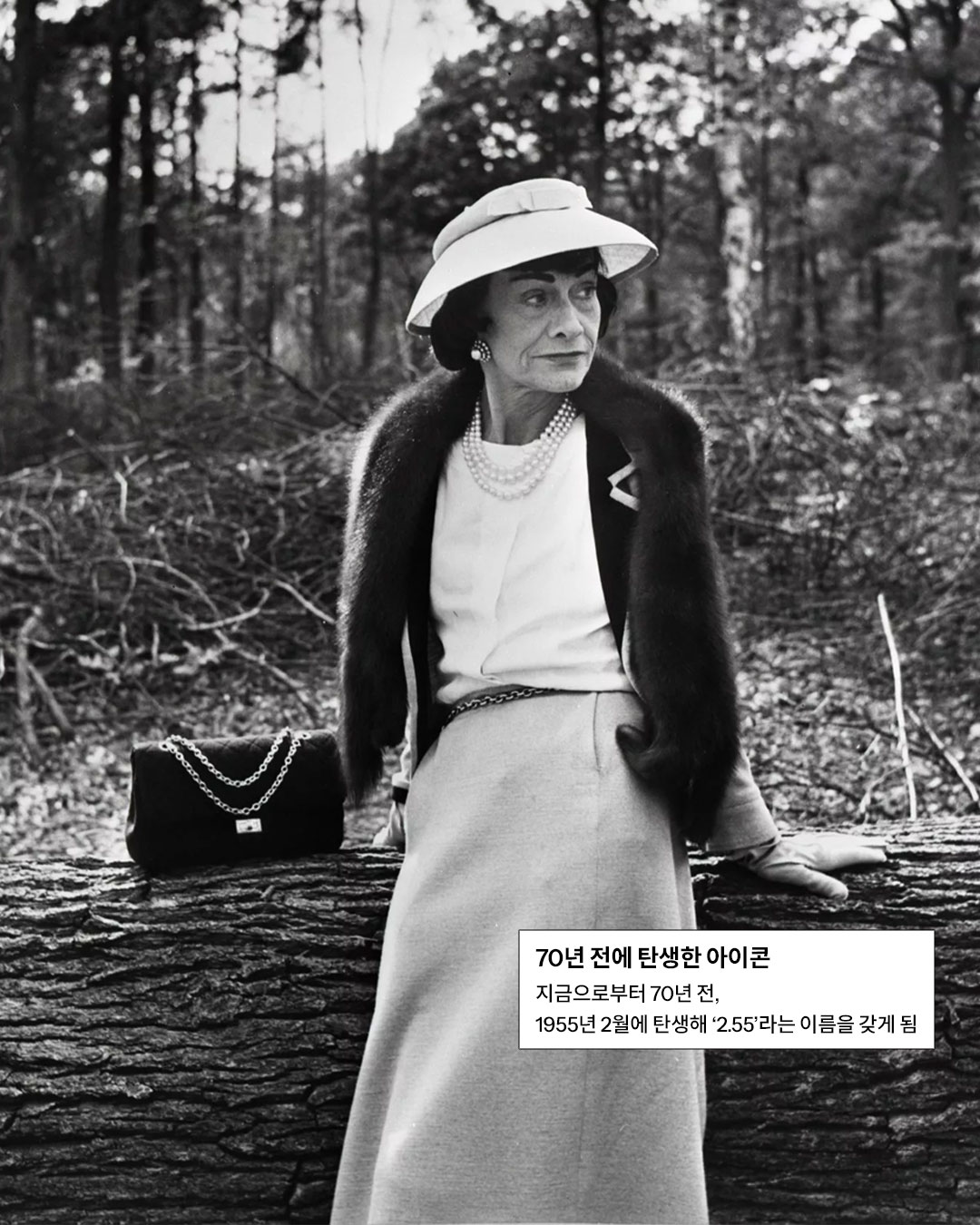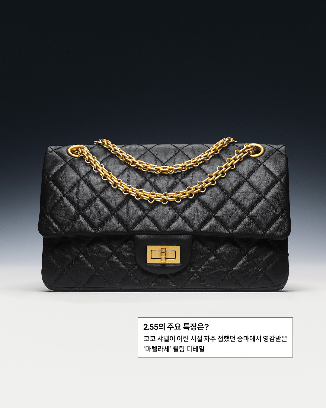 가브리엘 샤넬이 70년 전에 디자인한 이 핸드백은, 1955년 2월에 탄생해 ‘2.55’라는 이름을 갖게 되었습니다. 당시 대부분 손에 들고 다녀야 했던 클러치와 달리, 어깨에 멜 수 있는 체인 스트랩을 더해 여성의 실용성과 자유로움을 강조한 가방이에요.
