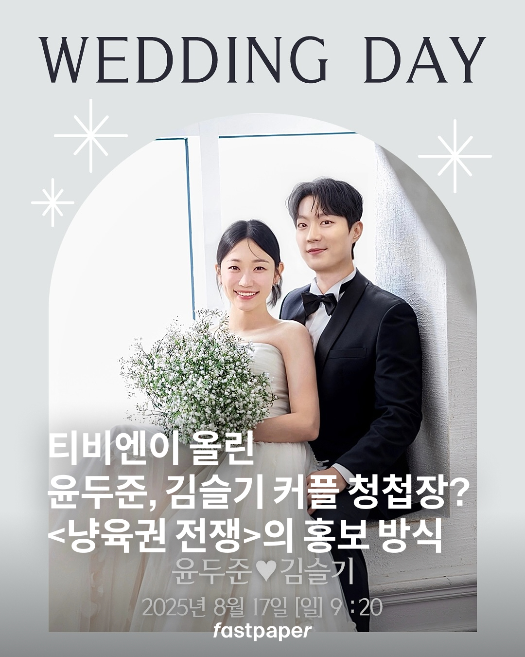 속은 사람 있어요? (일단 나) 티비엔 드라마 공식 계정에 윤두준, 김슬기의 청첩장이 올라왔는데요. 이는 오는 17일 새로 시작하는 드라마 <냥육권 전쟁>의 홍보 이미지입니다. 이혼을 앞둔 부부가 자식 같은 고양이를 두고 귀여운 ‘냥’육권 전쟁을 치루는 이야기죠.