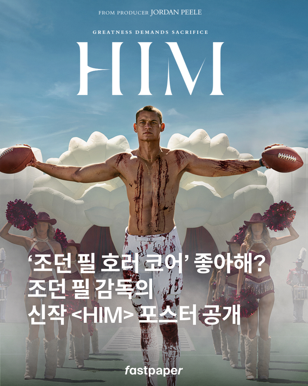 영화 감독 조던 필이 제작을 맡고 저스틴 티핑이 감독으로 나선 신작 <HIM> 포스터가 공개되었습니다. 스포츠 호러 장르로, 미식축구 선수 쿼터백 카메론 케이드가 느끼는 공포감을 담고 있죠. 해당 역할은 실제 대학 미식축구 선수 출신인 배우 타이릭 위더스가 연기힙니다.
