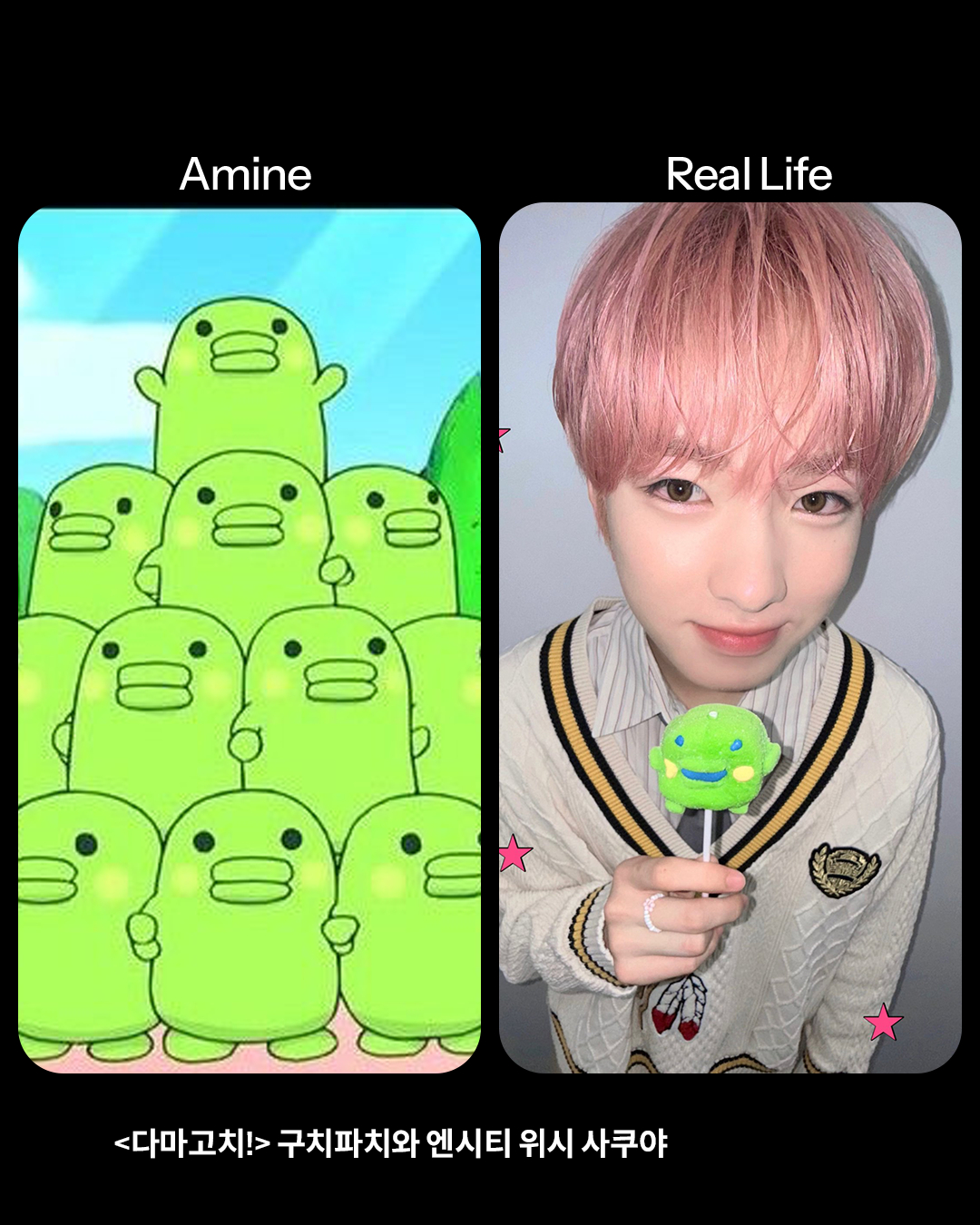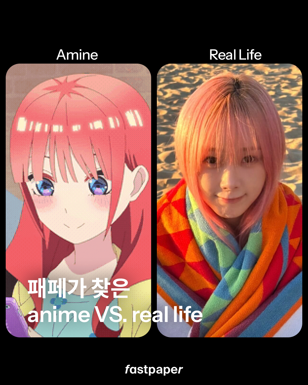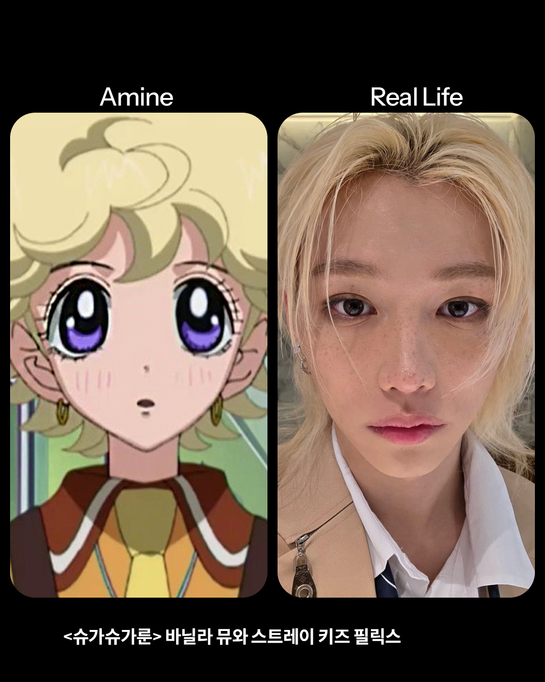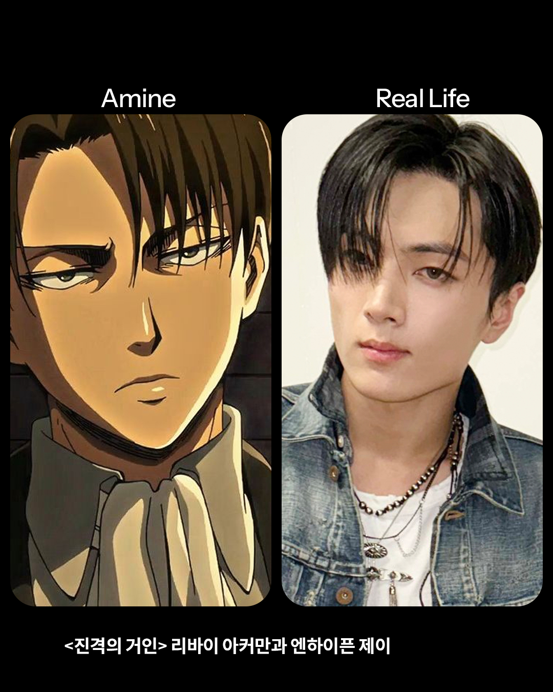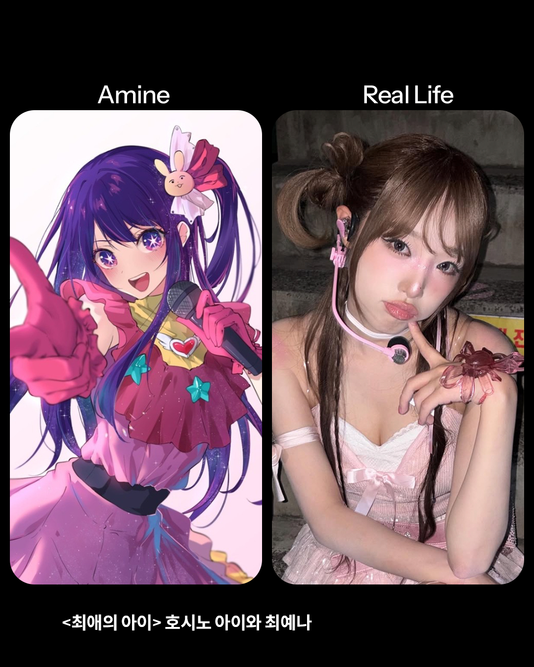 <최애의 아이> 나카노 니노와 에스파 지젤, <진격의 거인> 리바이 아커만과 엔하이픈 제이, <슈가슈가룬> 바닐라 뮤와 스트레이 키즈 필릭스, <최애의 아이> 호시노 아이와 최예나, <다마고치!> 구치파치와 엔시티 위시 사쿠야까지! 패스트페이퍼도 anime VS. real life 붐에 올라타봅니다.