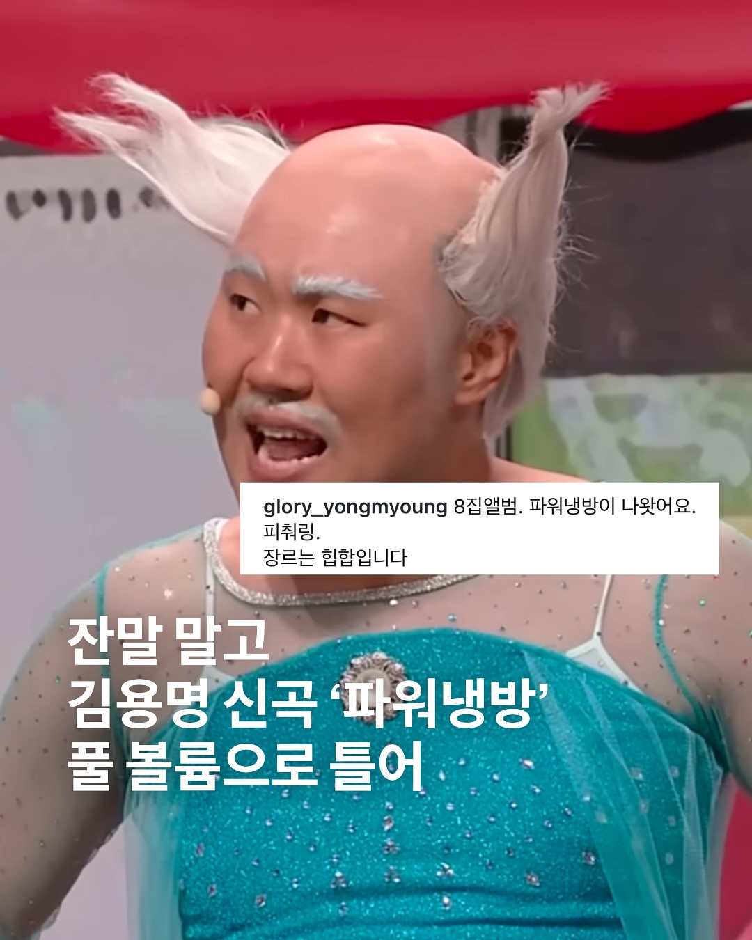 여름의 애환이 담긴 김용명의 유행어 ’잔말 말고 에어컨 파워 냉방으로 틀어‘가 노래가 되었습니다. 힙합 장르의 곡으로 김용명 본인이 피처링으로 참여. 잔말 말고 풀 볼륨으로 스밍할게요.