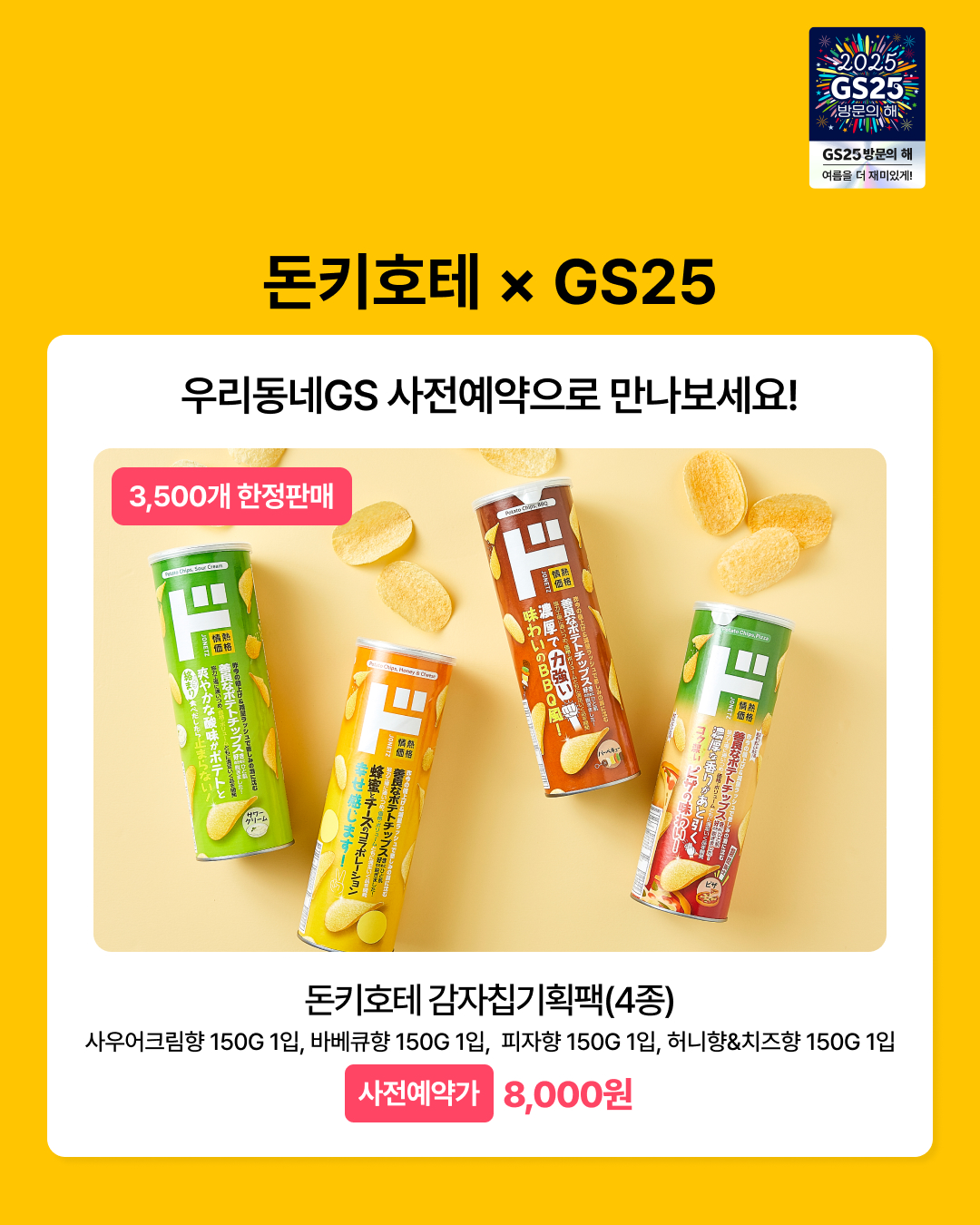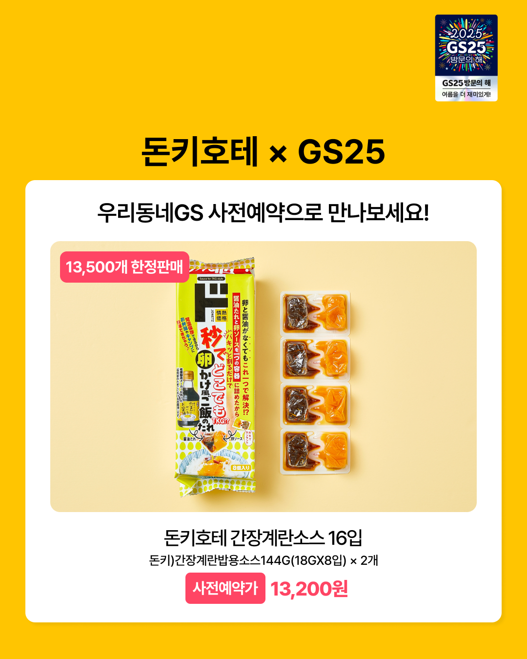 주문 가능한 제품은 더현대 서울 팝업에서 인기가 높았던 간장계란밥 소스와 원통형 감자칩 4종세트로, 일주일간 한정 수량 판매하며, 29일부터 상품 수령이 가능하다고 합니다. 이를 계기로 점차 제품 범위도 넓힐 계획이라는 GS25. 이러다 한국에도 돈키호테가 오픈하게 되지 않을까요?
