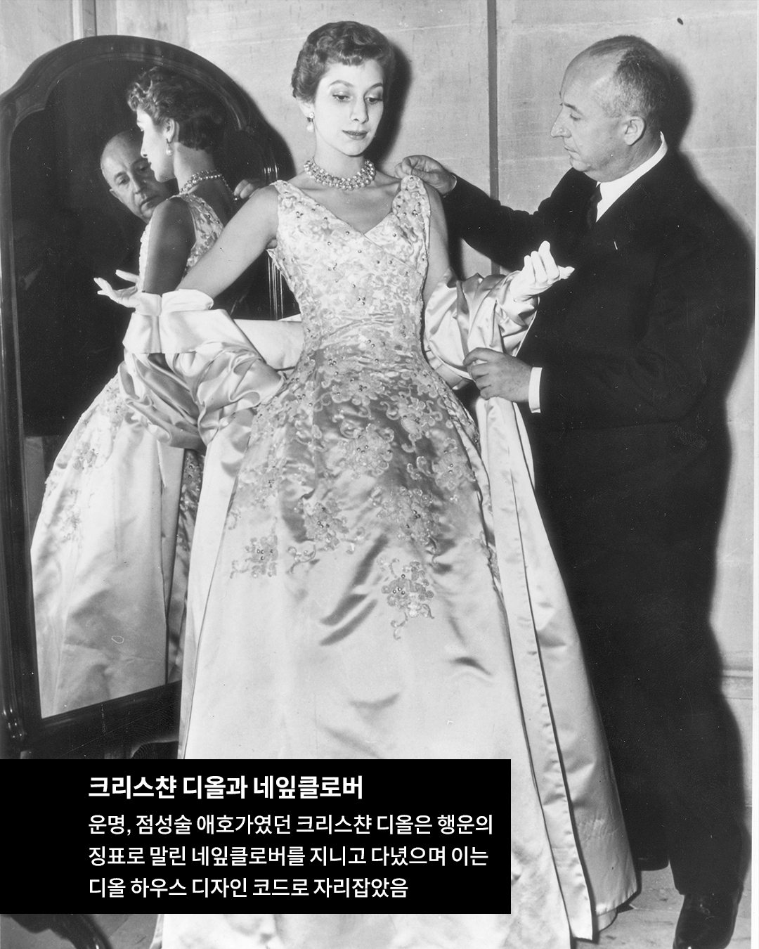 디올의 창시자 크리스챤 디올은 운명과 점성술 애호가였다고 해요. 그 때문에 다양한 행운의 상징들을 믿었는데 그중 하나가 네잎클로버였습니다. 이는 디올 하우스의 디자인 코드로 자리 잡았죠.