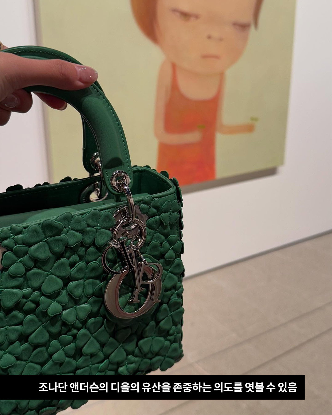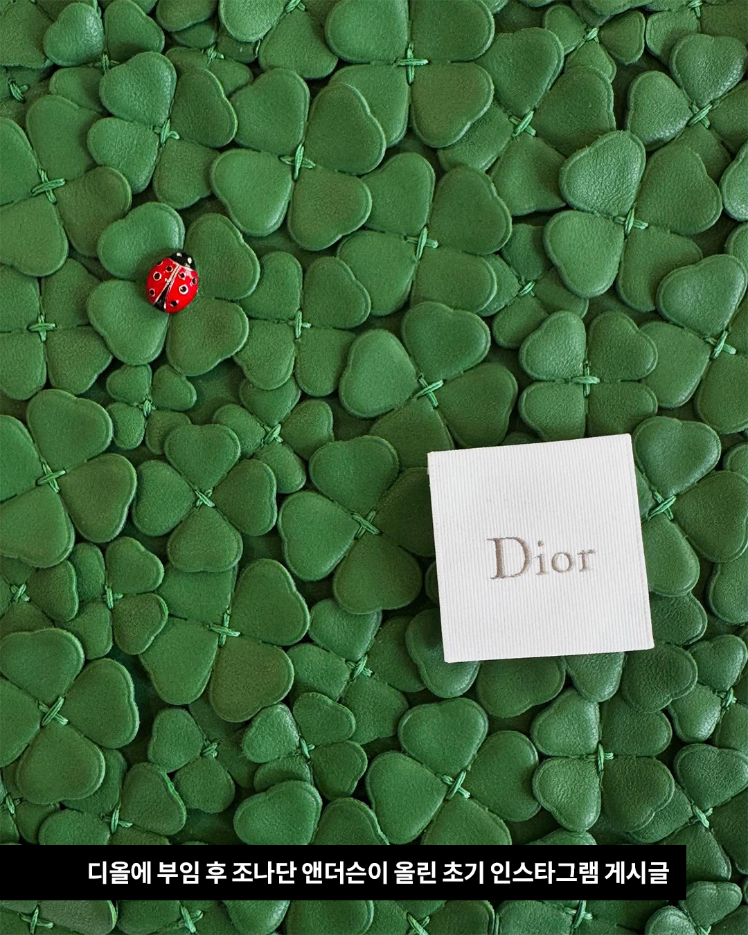 이 네잎클로버 레이디 디올백의 포인트는 아무래도 콕 박혀있는 무당벌레 아닐까요? 디올에 부임한 후 인스타그램에 스포일러 작업물을 올렸던 조나단 앤더슨, 여기서 이 네잎클로버와 무당벌레를 확인할 수 있었습니다.