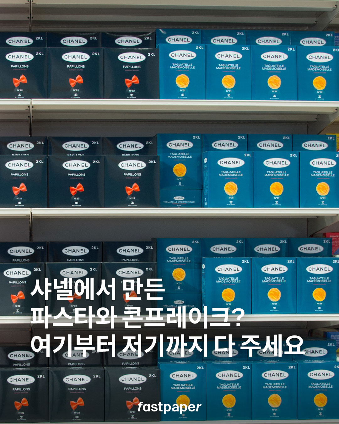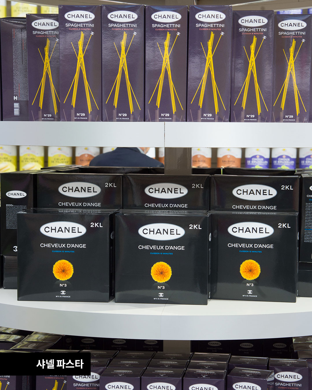 옷, 액세서리가 아닌 파스타, 쌀, 콘프레이크, 과자 상자에 새겨진 샤넬의 더블 C 로고. 이곳은 어디일까요?