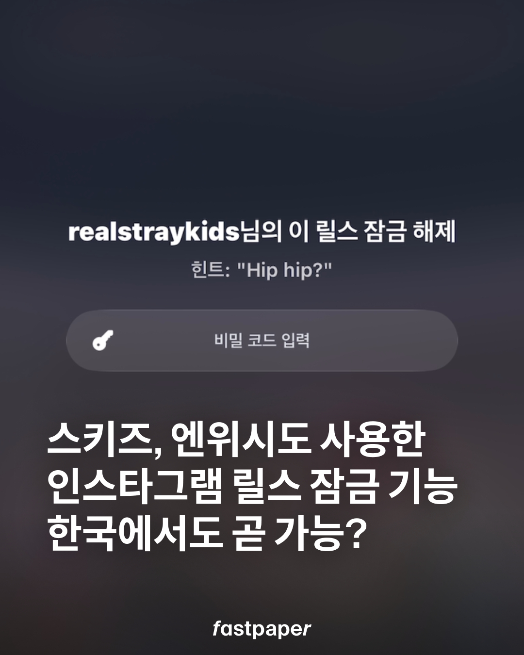 팬들만 볼 수 있는 게시물? 인스타그램 릴스 잠금 기능 테스트 중인 국내 아이돌 계정들. 최근 릴스 잠금 신기능을 아이돌 공식 계정들이 사용하고 있는데요. 올해 4월, 메타 디자인 @design 계정에서 소개된 기능으로 게시물에 설정된 힌트를 보고 암호를 입력해야 콘텐츠를 볼 수 있죠.