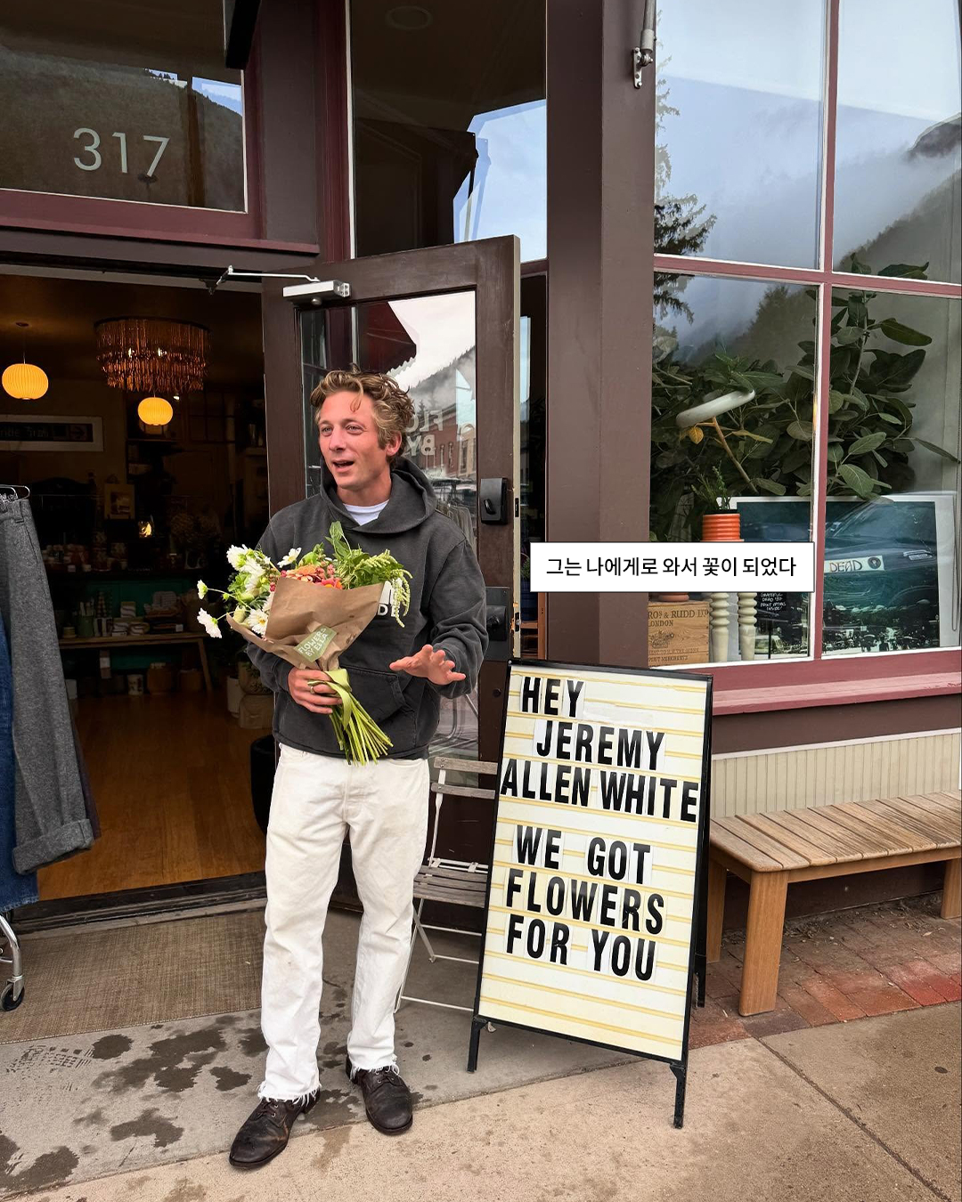 사람이 이렇게 스윗하면 반칙이죠. 꽃이 있는 곳이라면 어디든 달려가는 제레미 앨런 화이트가 어느 꽃집 사장님의 부름에 응답했습니다.. 바로 ‘HEY JEREMY ALLEN WHITE, WE GOT FLOWERS FOR YOU(헤이 제레미 앨런 화이트, 여기 당신에게 줄 꽃을 준비했어요)’라며 미국 콜로라도의 어느 꽃집 사장님이 제레미를 소환한 건데. 여기에 그가 반응한 거죠. 기절.