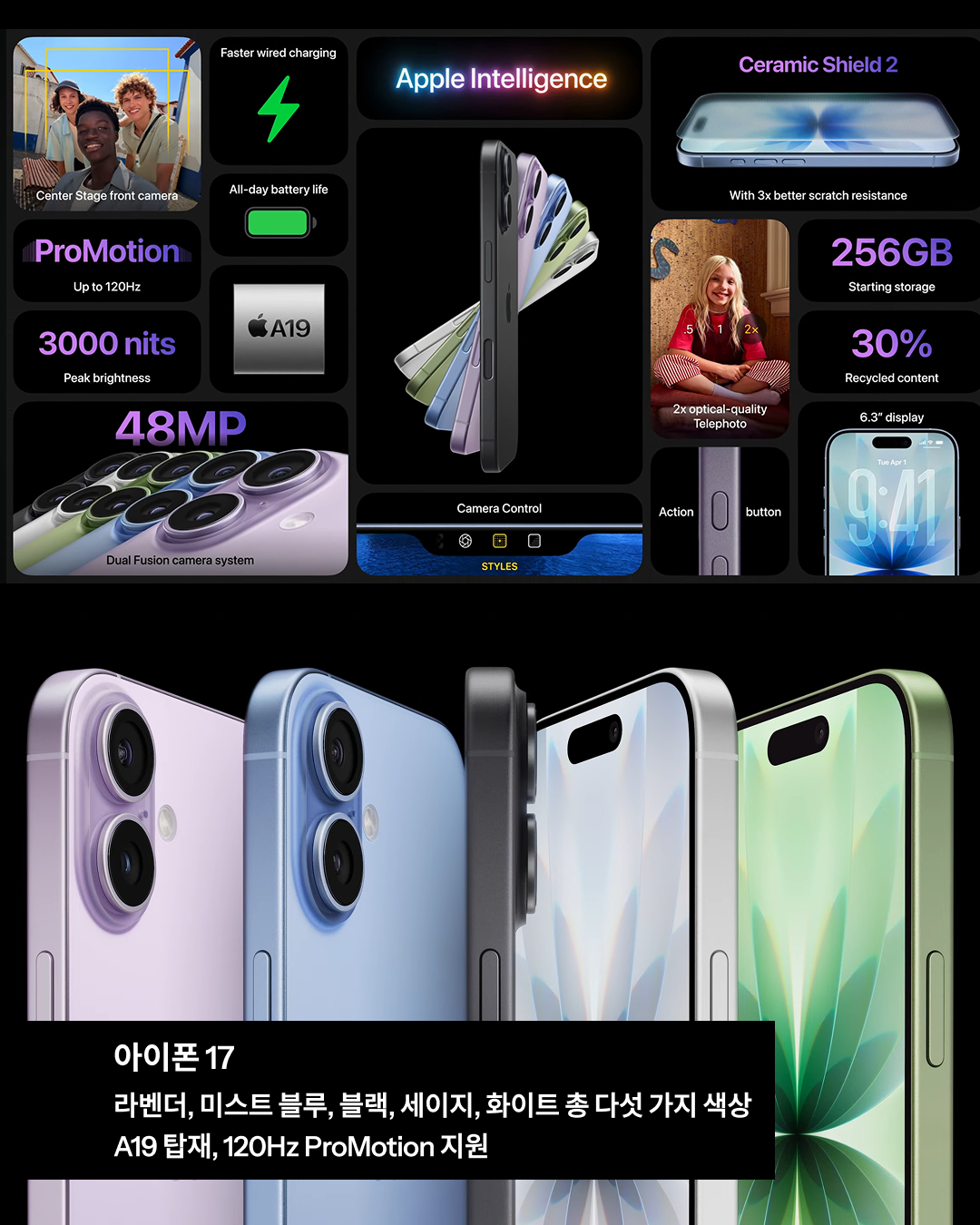 아이폰 17의 시작가는 799달러(약 129만 원)이며, 아이폰 에어는 999달러(약 159만 원)부터, 또 아이폰 17 프로는 1,099달러(약 179만 원), 최상위 모델 아이폰 17 프로 맥스는 1,199달러(약 199만 원)로 책정되었습니다.