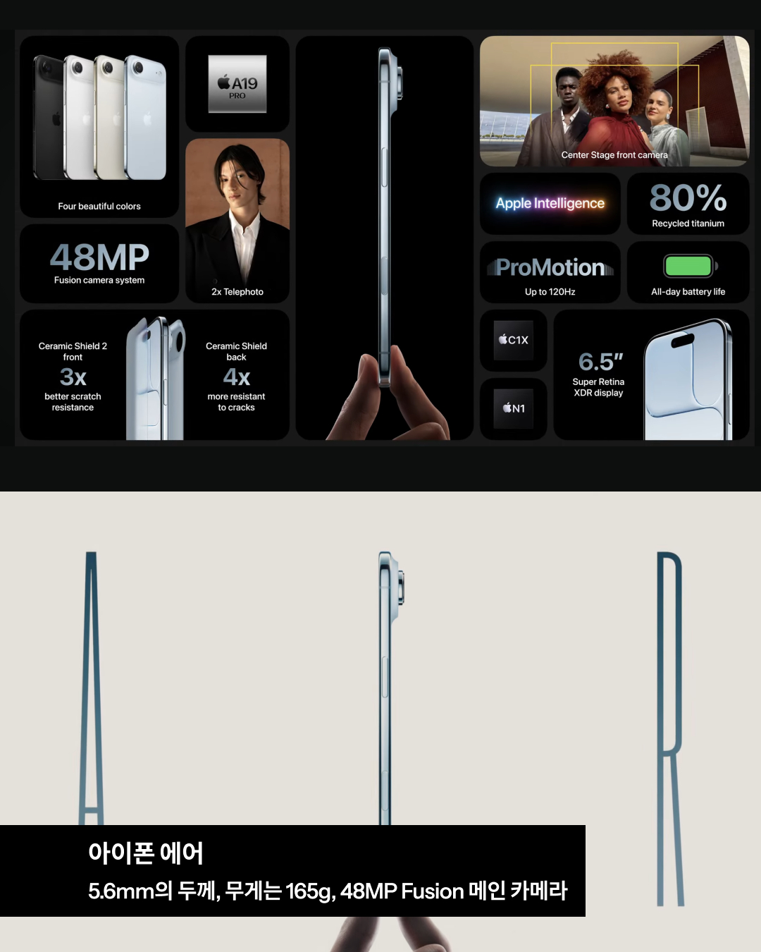 9월 9일 한국 시간으로 오전 2시, 쿠퍼티노 애플 파크에서 열린 2025 애플 이벤트에서 아이폰 17 시리즈와 함께 초슬림 신제품 아이폰 에어가 공개되었습니다.