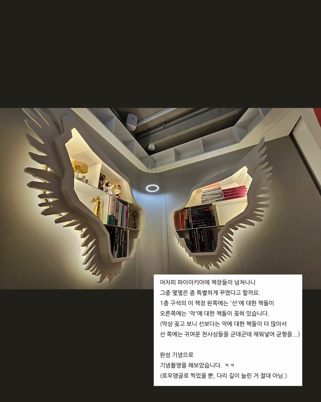 책장 콘셉트도 확실한 영화 평론가 이동진의 작업실 겸 스튜디오, NEW ‘파이아키아’에 생긴 포토존? 파이아키아는 이동진이 모아온 책과 DVD 등 애장품이 가득한 공간이자 유튜브를 촬영하는 스튜디오로도 사용되는데요.