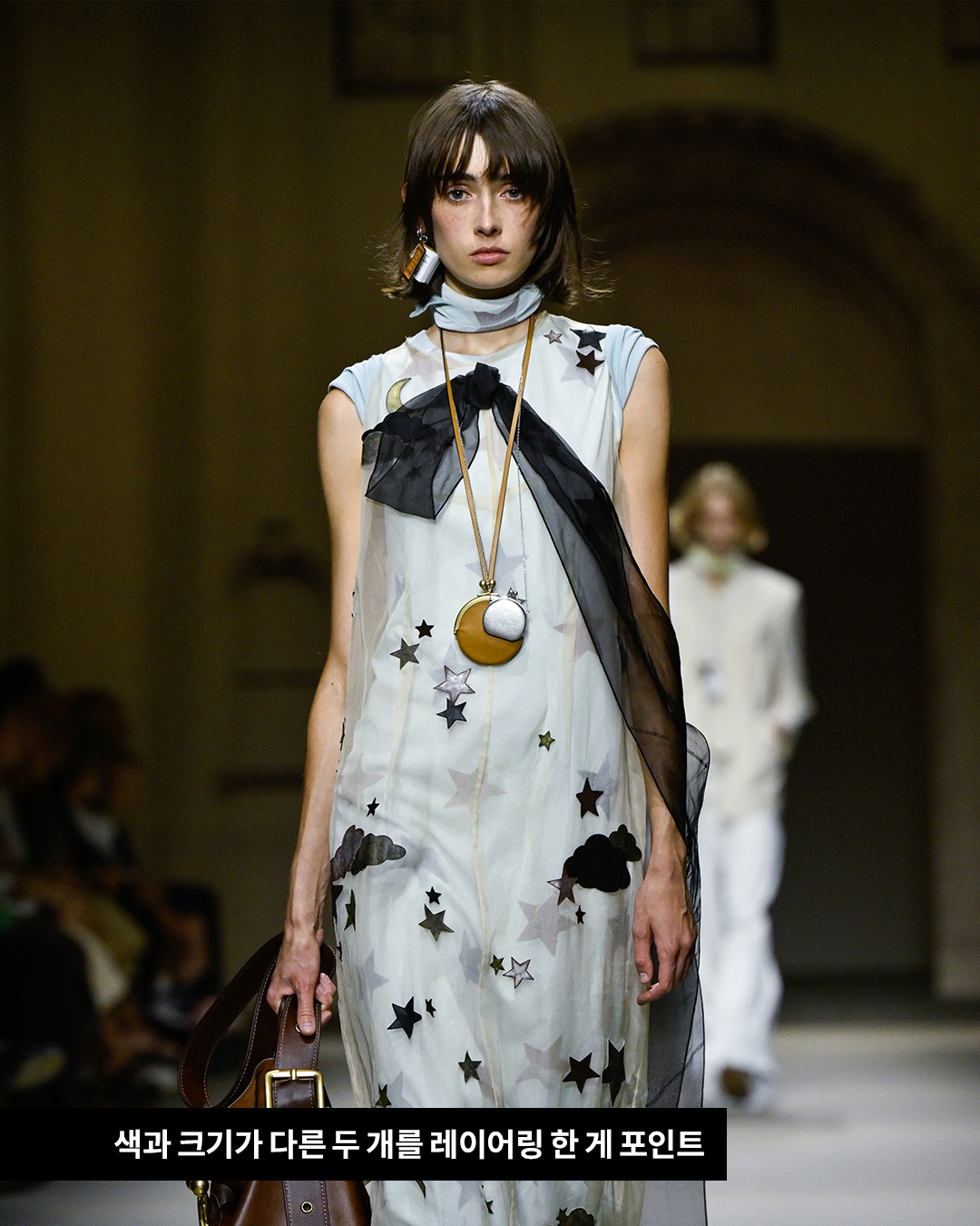 다양한 디자인의 가죽 동전 지갑 목걸이가 등장했는데요, 예전부터 존재하는 아이템이지만 이렇게 코치의 도회적인 룩에 더해지니 새롭게 느껴지지 않나요?