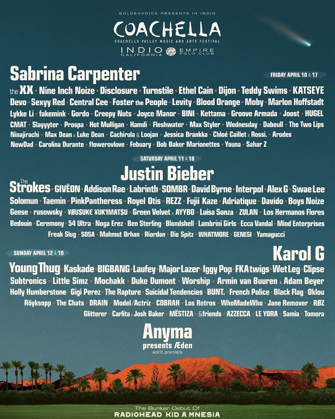 오늘 공개된 2026 코첼라 라인업에 따르면 빅뱅이 무대에 오를 예정입니다. 4월 10일과 17일에는 사브리나 카펜터, 센트럴 씨, 블러드 오렌지, 캣츠아이 등 화려한 라인업이 기다리고, 11일과 18일에는 저스틴 비버, 태민, 핑크팬더리스, 후지이 카제 등이 무대를 채웁니다.