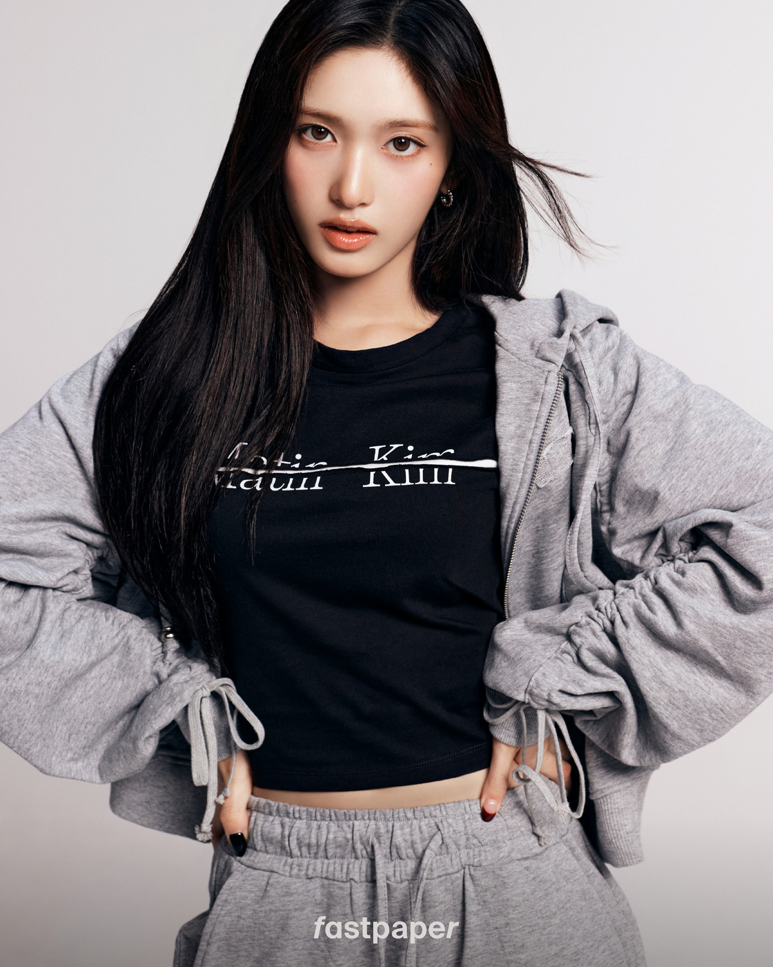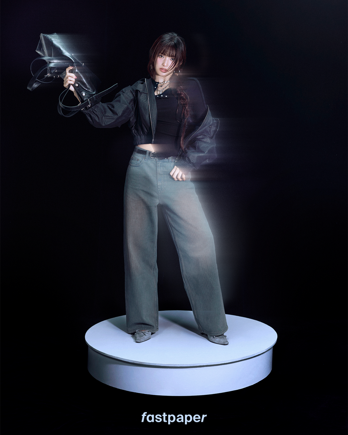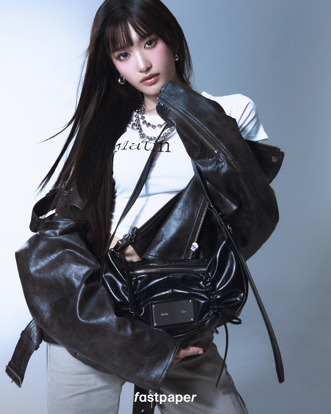 마뗑킴의 시그니처 로고 티셔츠 위에 가죽 재킷을 걸치고 키튼 힐, 메탈 플레이트가 돋보이는 핸드백으로 강렬한 무드를 연출했는데요. 또 사이드 슬릿이 포인트인 톱과 데님 팬츠, 그레이 스웻 셋업, 그리고 소프트하고 캐주얼한 무드의 스커트로 스타일링을 완성했습니다.