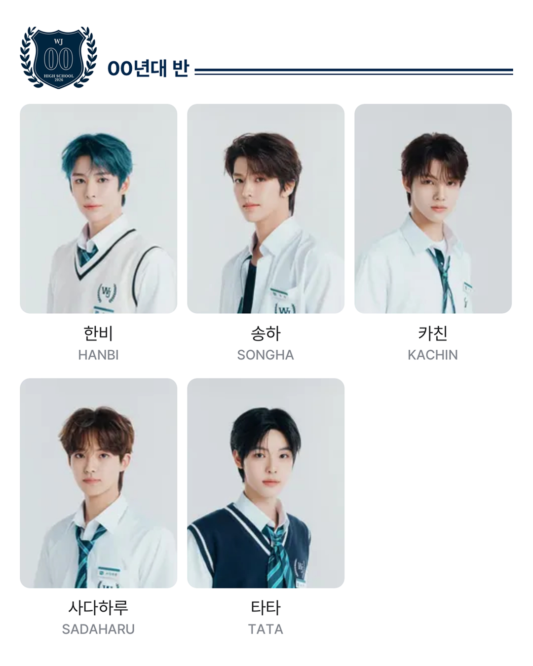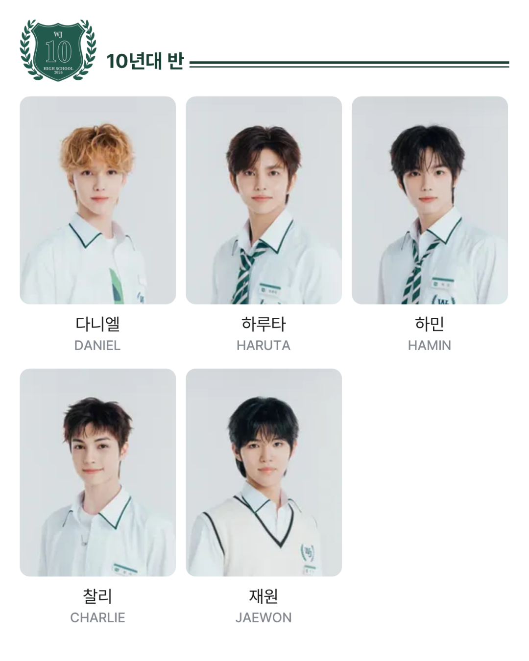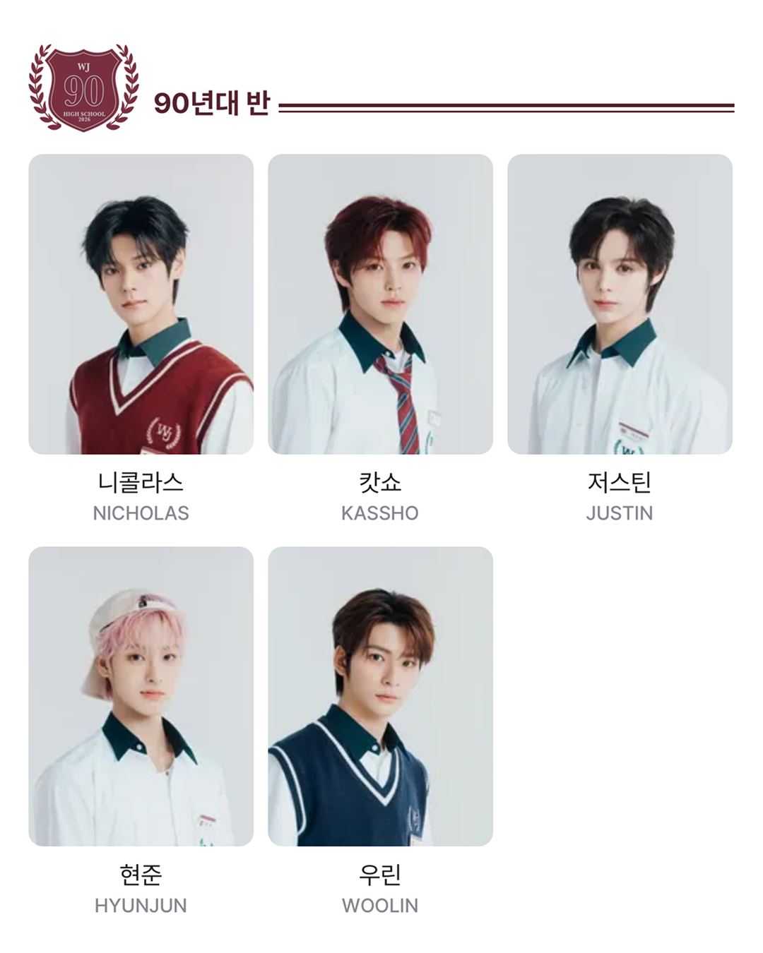 90년 대 반에는 니콜라스, 캇쇼, 저스틴, 현준, 우린, 00년 대 반은 한비, 송하, 카친, 사다하루, 타타, 마지막 10년 대 반에는 다니엘, 하루타, 하민, 찰리, 재원이 있으며 연습생 15인이 출연합니다.