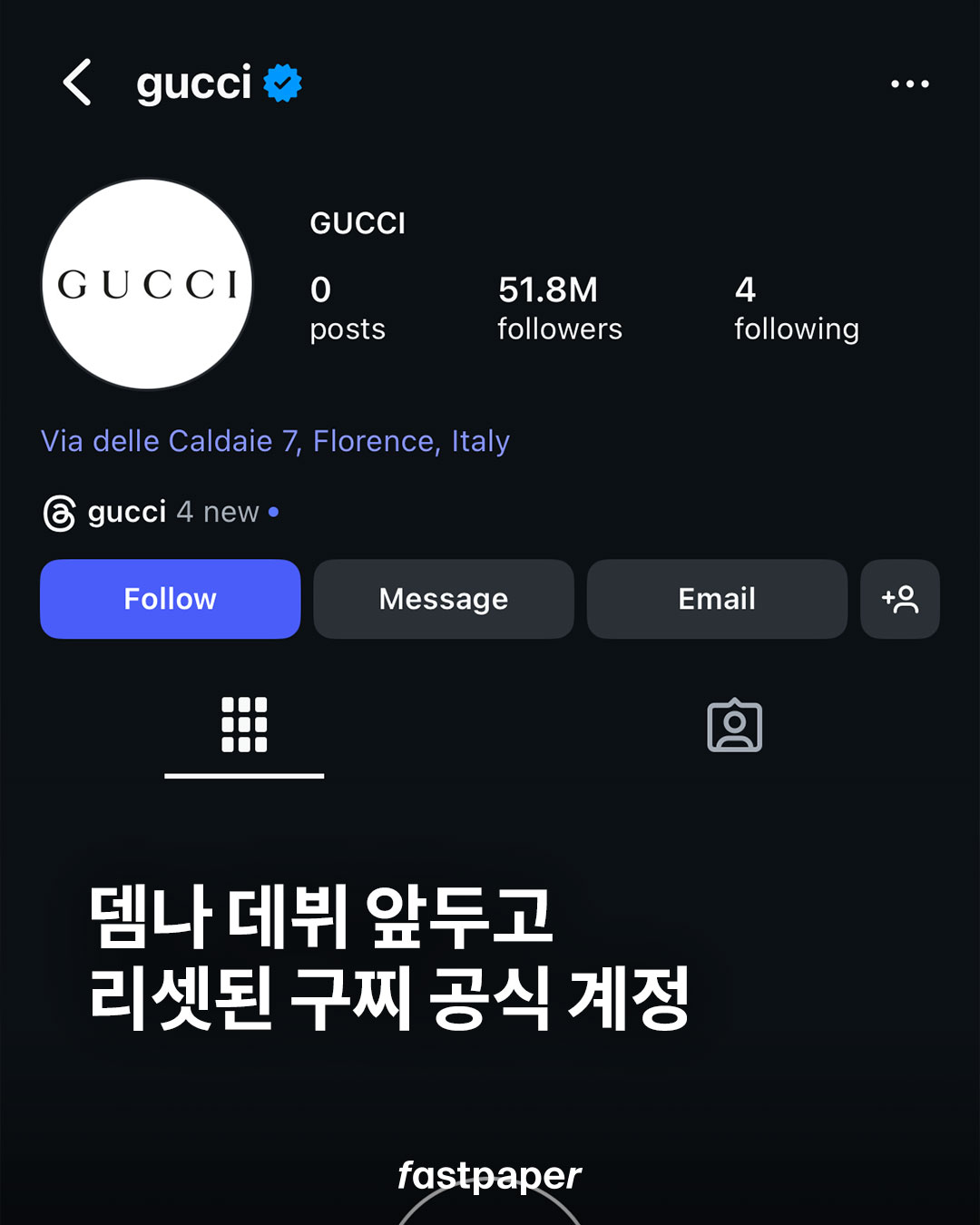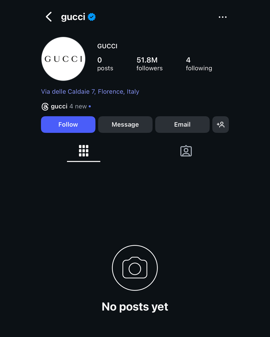 구찌가 밀란에서 펼쳐질 뎀나의 데뷔 프레젠테이션을 앞두고 인스타그램 계정의 모든 게시물을 삭제했습니다.