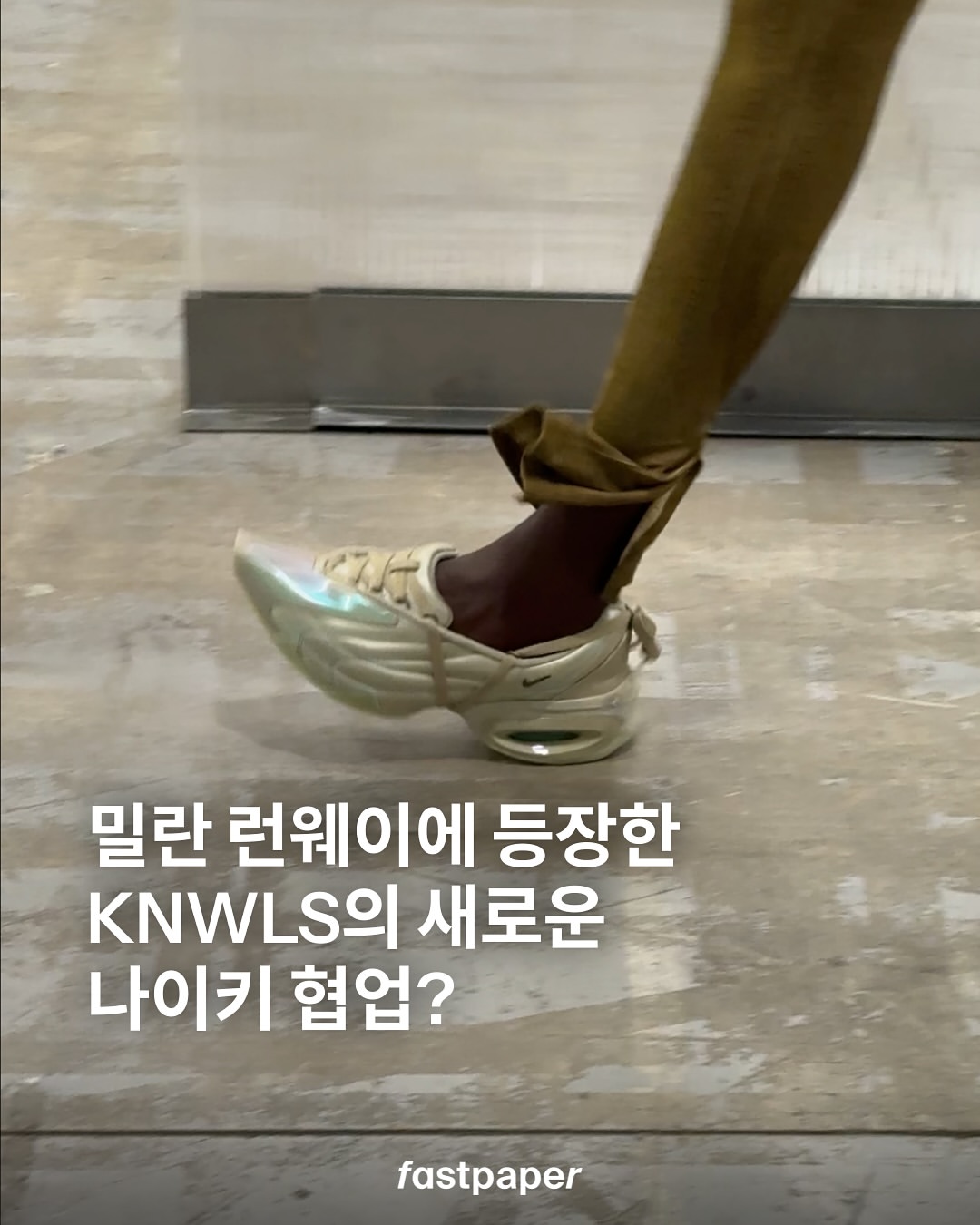 밀란 패션위크 둘째 날 마무리는 KNWLS! 밀란에서 처음 컬렉션을 선보인 노울스는 런웨이에서 특별한 협업을 선보였습니다. 그 주인공은 바로 KNWLS X 나이키 ’에어맥스 뮤즈 발레 플랫 스핀‘. 제발 한국에도 출시한다고 해주세요…