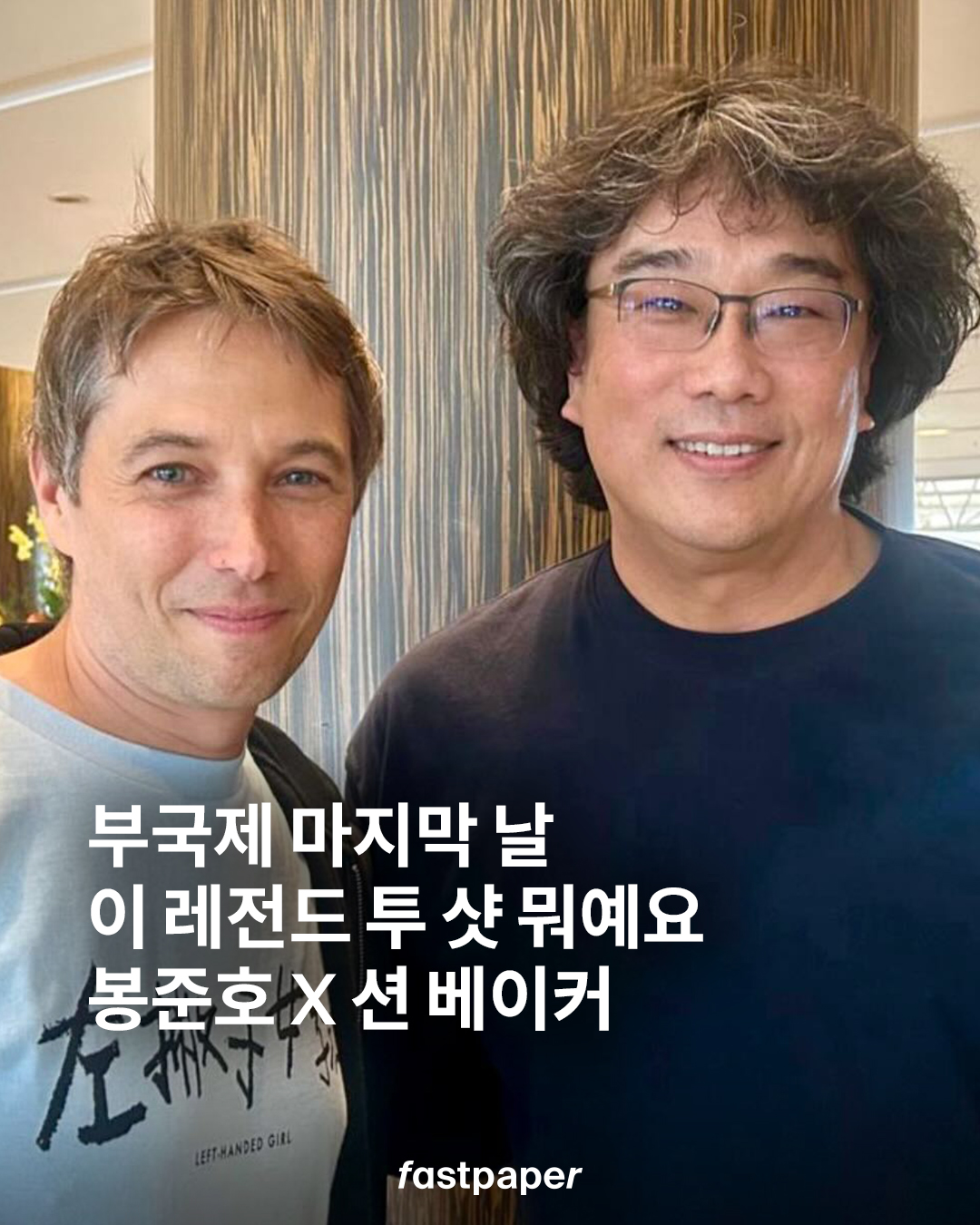 부산국제영화제 마지막 날, 호텔 로비에서 특별한 장면이 포착됐습니다! 션 베이커 감독이 자신의 SNS에 봉준호 감독과 함께한 투샷을 올렸는데요.