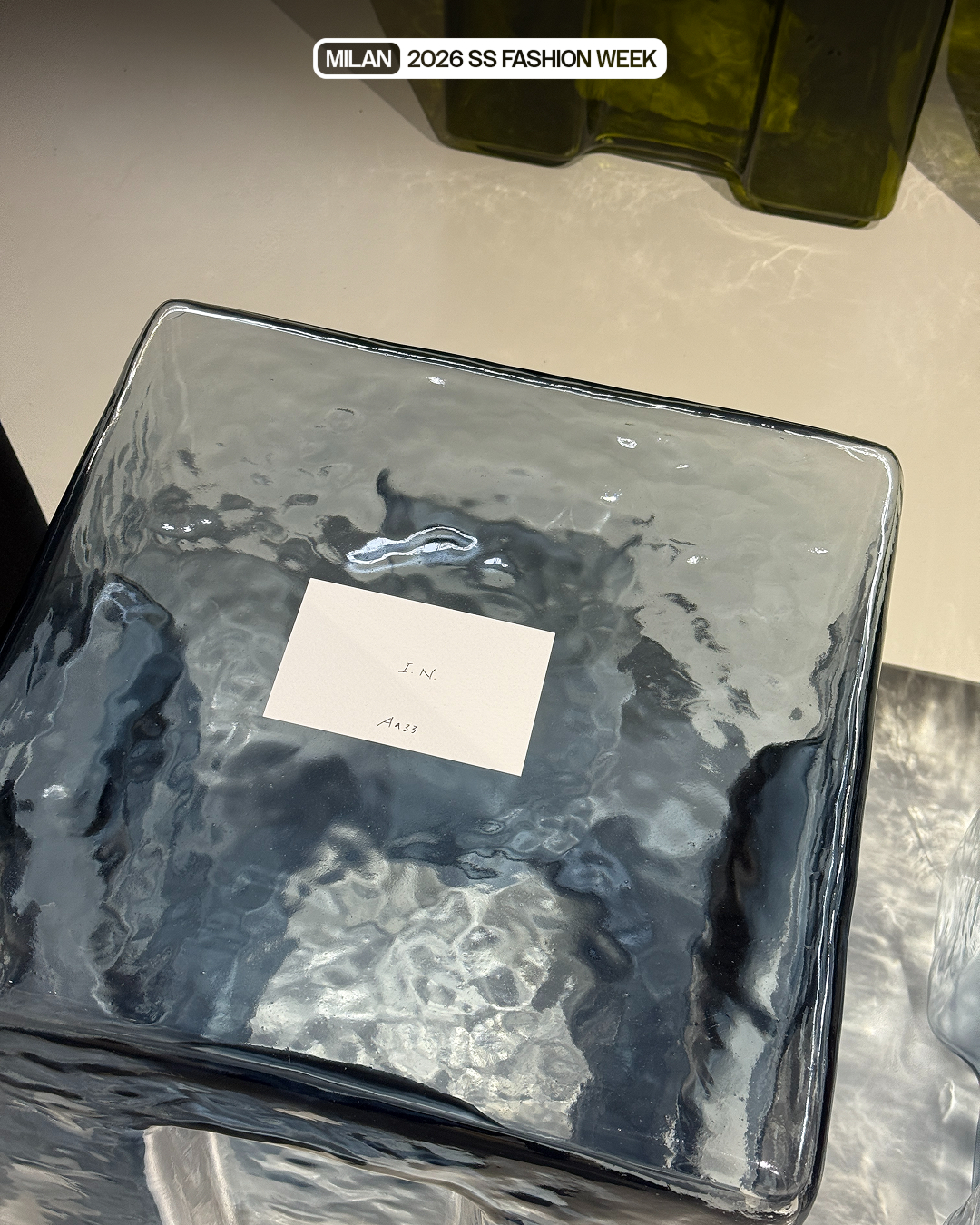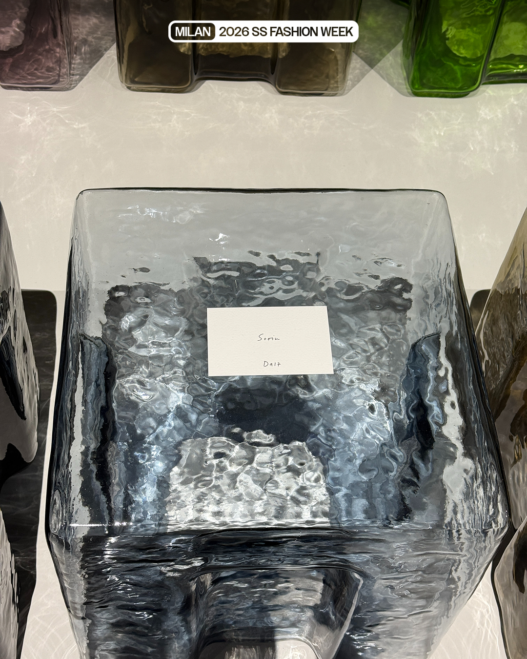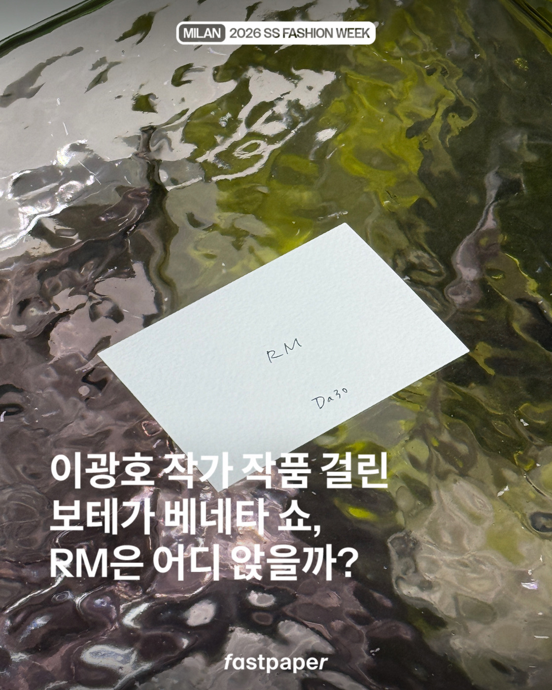 보테가 베네타의 쇼가 시작되기 전 포착된 반가운 이름들! 이번 시즌 쇼 참석이 예정된 RM은 우마 서면과 안나 윈투어의 옆자리에 앉을 예정이네요. 투명한 유리 의자 위에 있는 좌석표에서 아이엔과 수인의 이름도 발견했습니다.