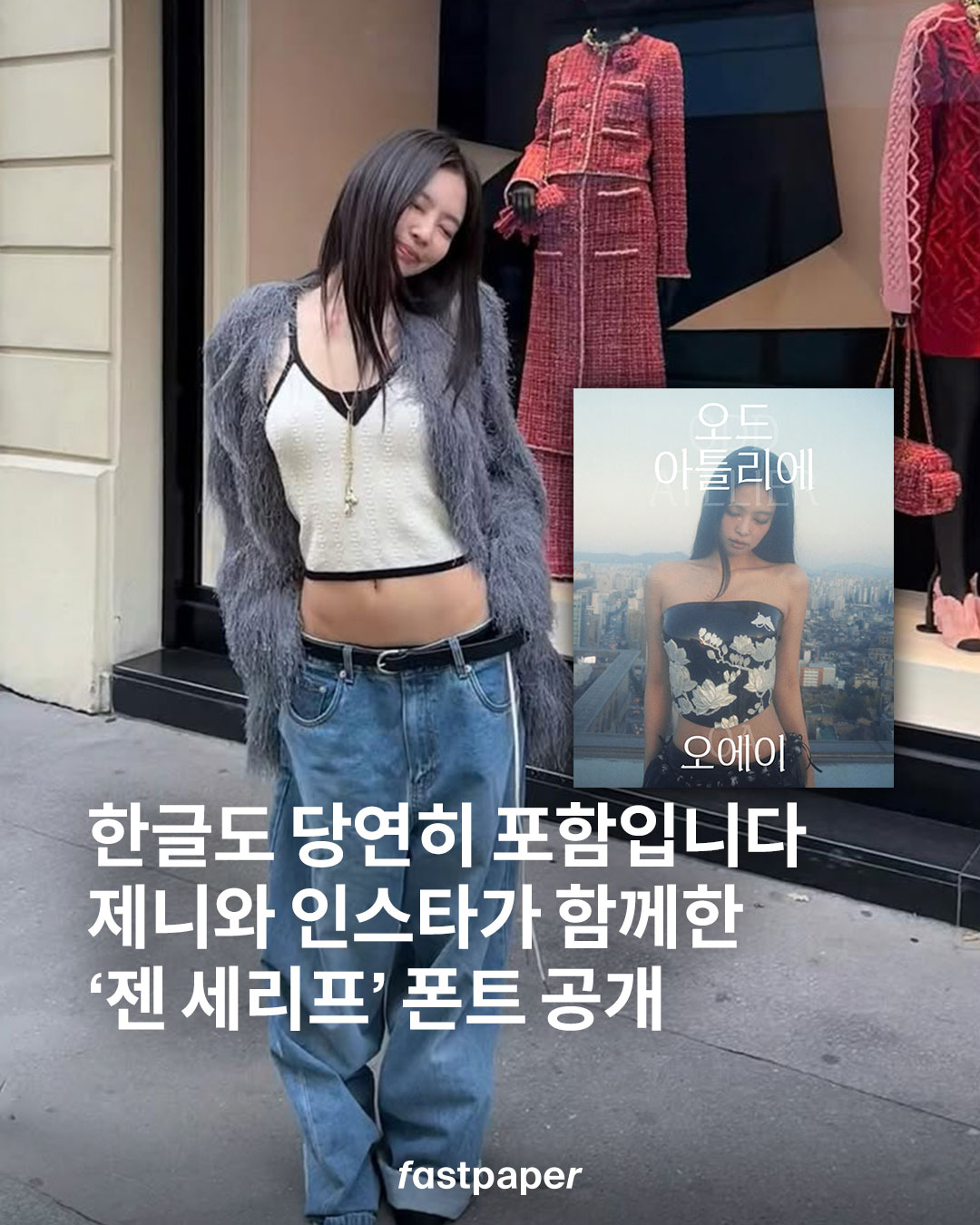제니가 오늘, 인스타그램 스토리를 통해 전한 소식이죠. 제니와 인스타그램이 함께한 새로운 폰트 ‘젠 세리프’가 한글날을 맞아 공식 공개되었습니다.