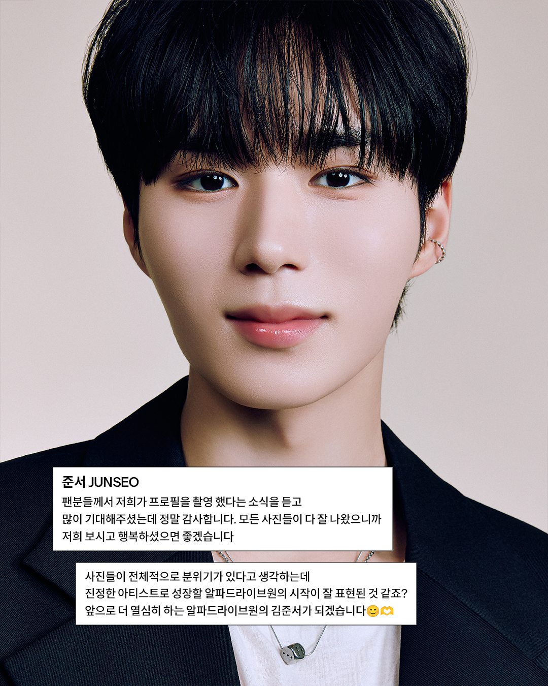 바로 어제 공개된 알파드라이브원의 첫 공식 프로필 사진. 촬영 현장에서 만난 알파드라이브원 멤버들의 인사와 앞으로의 각오, 단체 사진까지! 피드를 넘겨 확인해 보세요.
