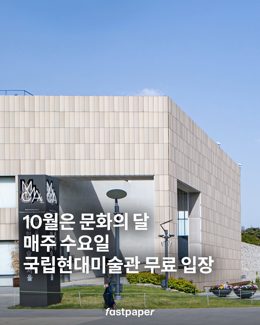 국립현대미술관의 ‘10월 문화의 달’을 맞아 10월 매주 수요일 무료 관람을 확대해 시행합니다. 더불어 정부 주관의 대규모 소비 행사인 ‘코리아 그랜드 페스티벌’을 맞아 11월 5일 수요일까지 무료 관람을 진행합니다.