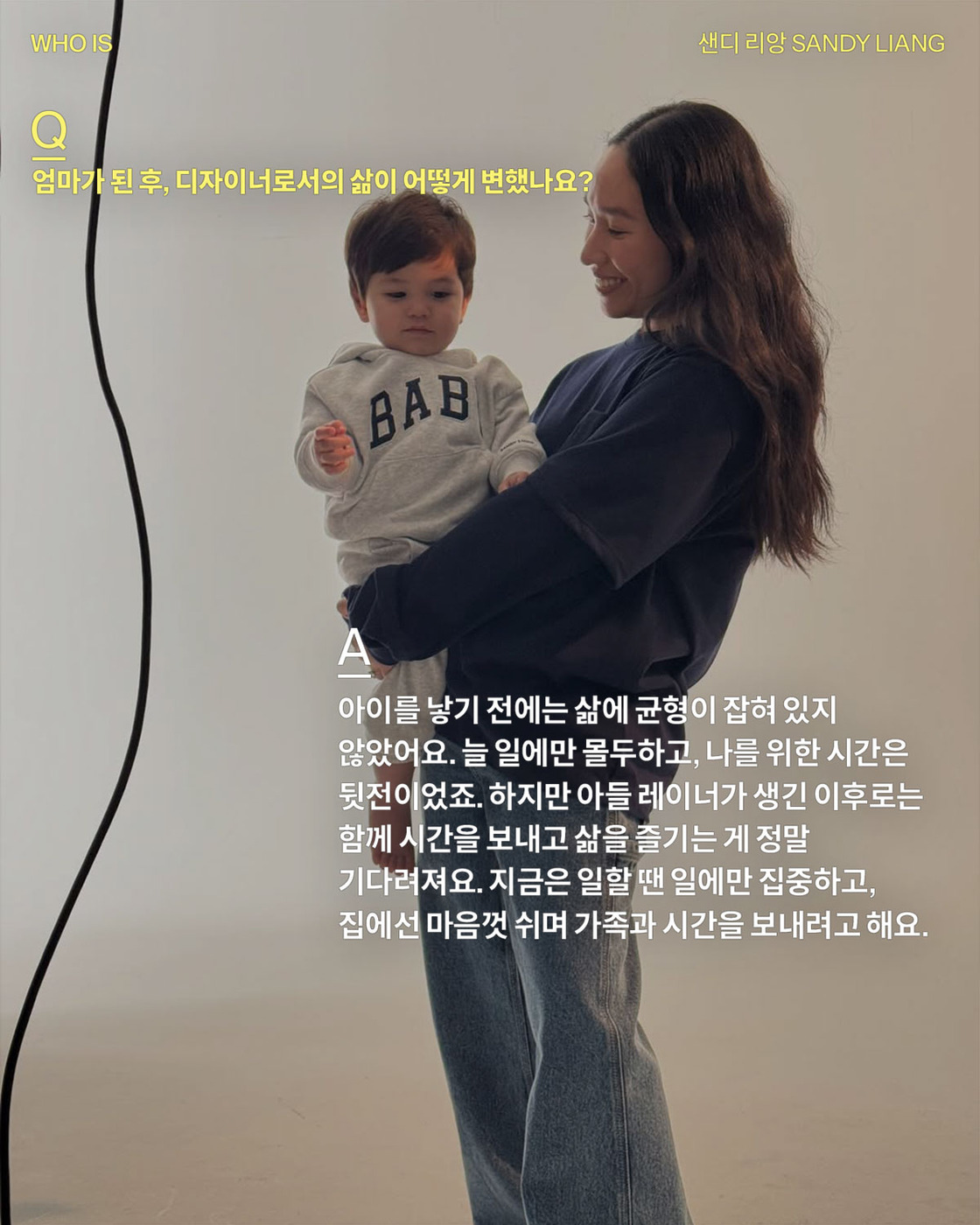 최근 갭, 살로몬과의 협업부터 ‘노스탤지어’를 주제로 한 귀여운 디자인들까지, 전 세계 소녀들의 마음을 사로잡은 디자이너 샌디 리앙을 만났습니다. 엄마가 된 후 처음으로 선보이는 2025 가을, 겨울 컬렉션에는 더욱 특별한 의미가 담겨 있는데요. 어린 시절의 향수부터 가장 애정하는 아이템까지, 샌디 리앙에게 직접 들어보았습니다.