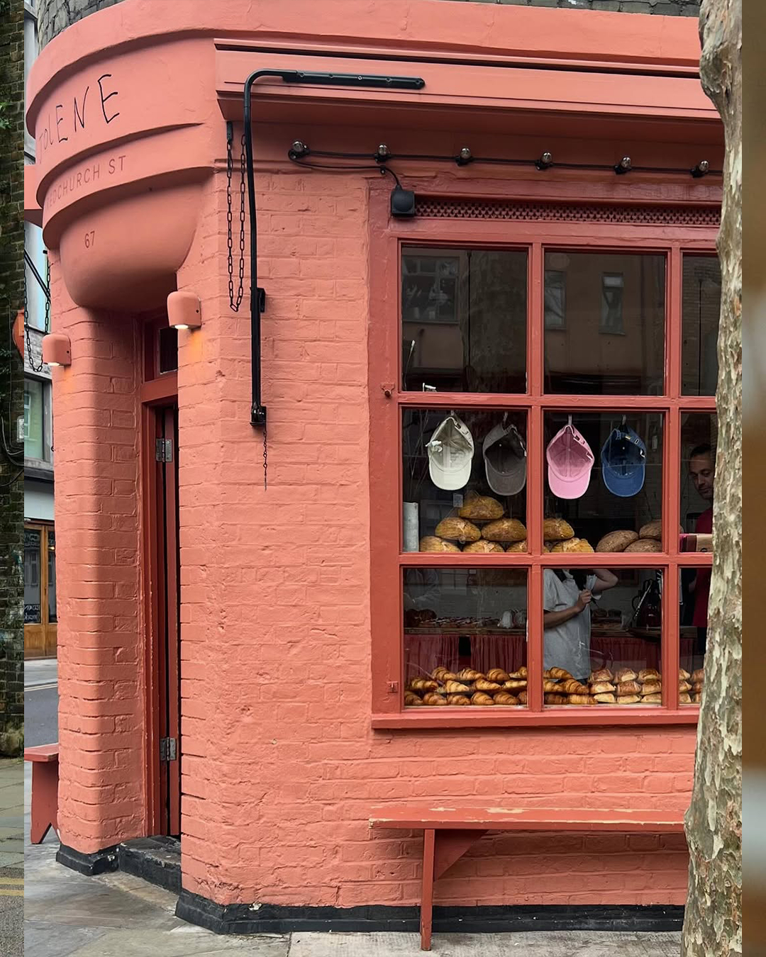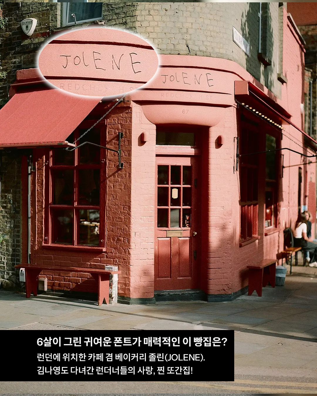 김나영도 다녀간 런던의 그 베이커리 겸 레스토랑, ‘졸린(JOLENE)’. 런더너들의 로컬 맛집으로 이름을 알리고 있는데요. 사랑스러운 핑크 외벽과 함께 이 카페의 포인트로 꼽히는 것은? 손이 가는대로 막 그렸지만 왠지 감각적인 카페 간판입니다.