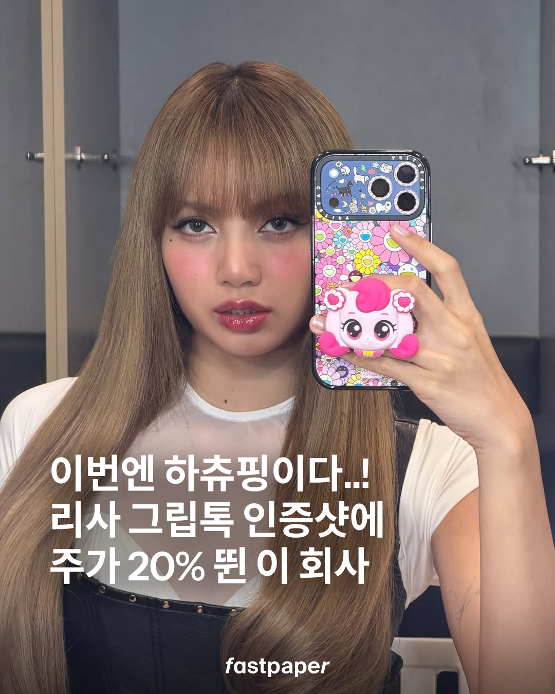 24일 오전 티니핑 제작사 SAMG엔터테인먼트 주가가 급등했습니다. 그리고 이 모든 건.. 리사가 인스타그램 피드에 올린 하츄핑 그립톡 사진 때문이라는 분석이 나오는데요.