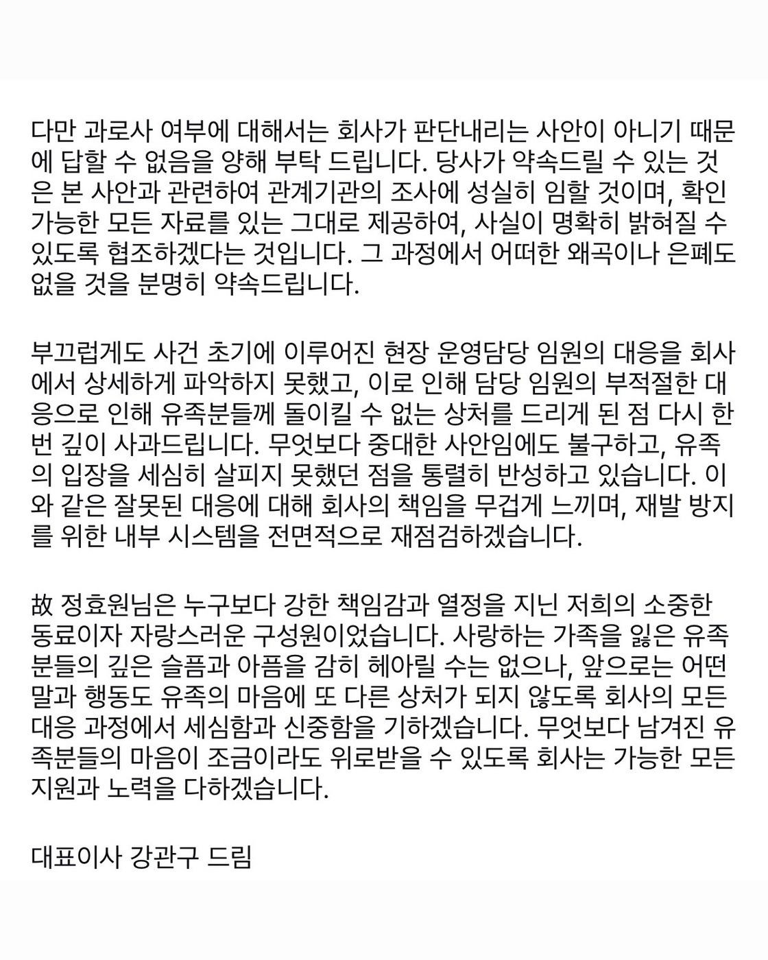 런던베이글뮤지엄은 먼저 “당사의 부족한 대응으로 유족께 상처와 실망을 드린 점 깊이 반성하며 진심으로 사과드린다”라고 글을 시작했는데요. 이어 “과로사 여부는 회사가 판단할 사안이 아니기 때문에 답변드리기 어렵다”라며 “본 사안과 관련해 관계 기관의 조사에 성실히 임하고, 확인 가능한 모든 자료를 투명하게 제공하겠다”라고 덧붙였습니다.