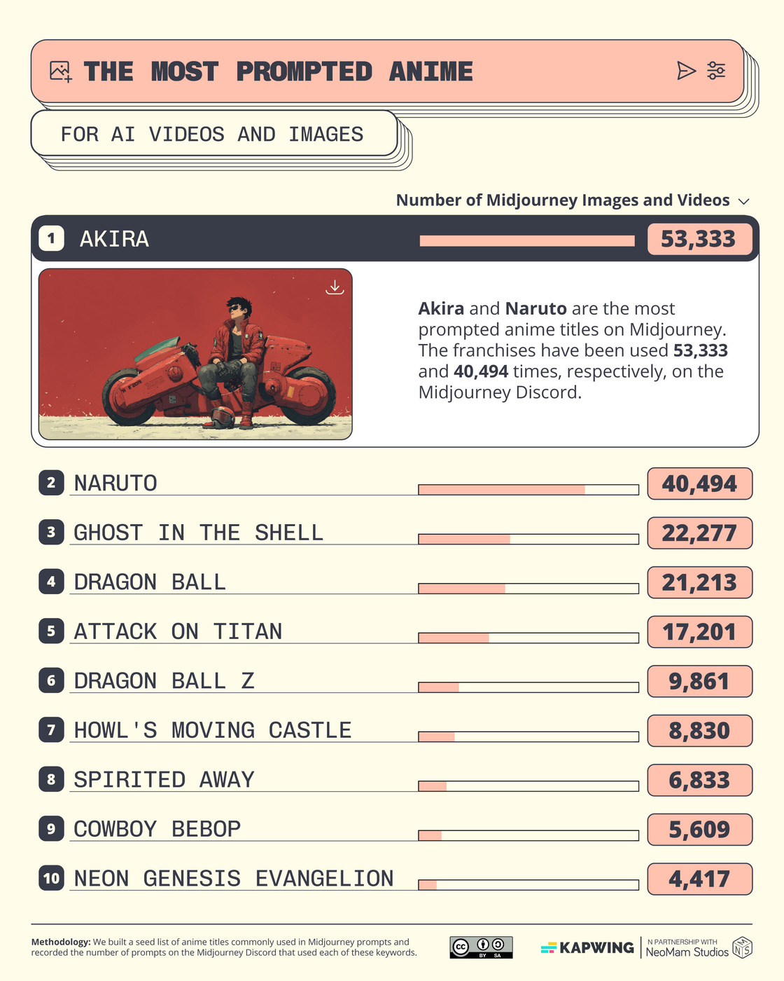 다양한 AI 툴을 통해 누구나 이미지와 영상을 손쉽게 만들어낼 수 있는 시대. 그중에서도 미드저니에서 가장 자주 언급되는 예술가와 영화, 애니메이션 작품 등이 공개됐습니다.